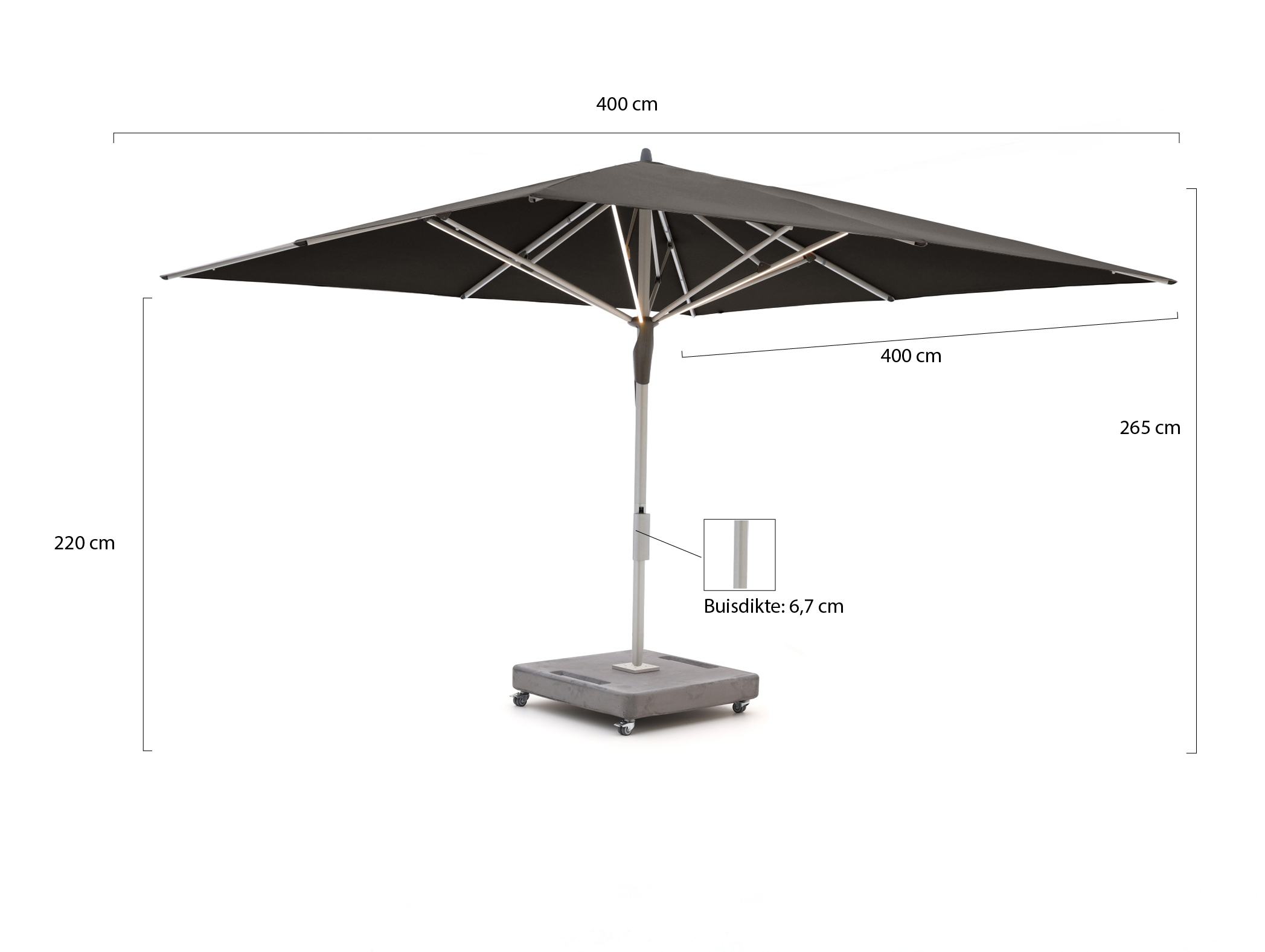 • Gewicht van de parasol (excl. voet): 30