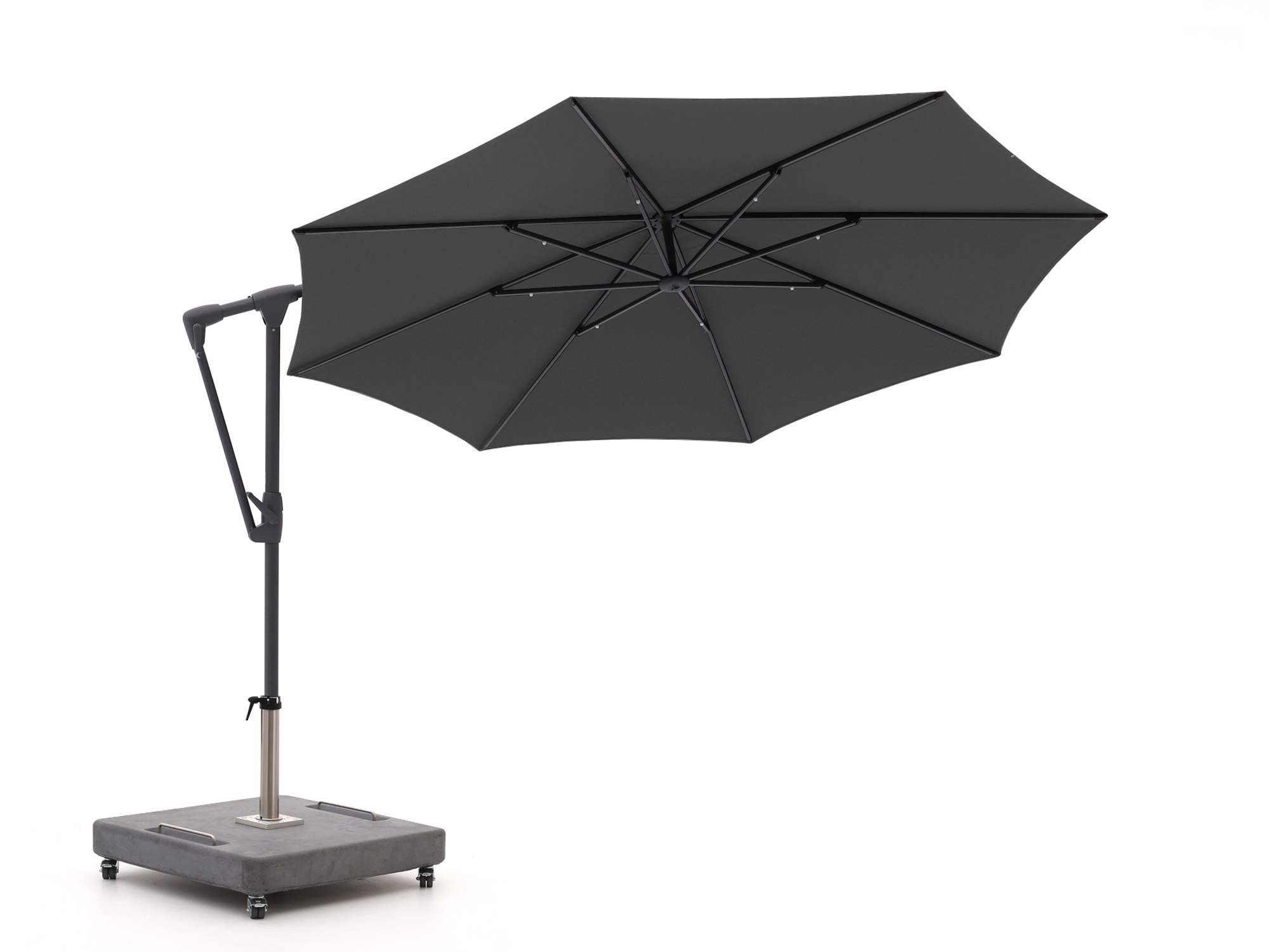 Je draait de parasol in 360 graden makkelijk met de zon mee. Zo zit je de hele dag lekker in de schaduw, zonder je stoel te verplaatsen.