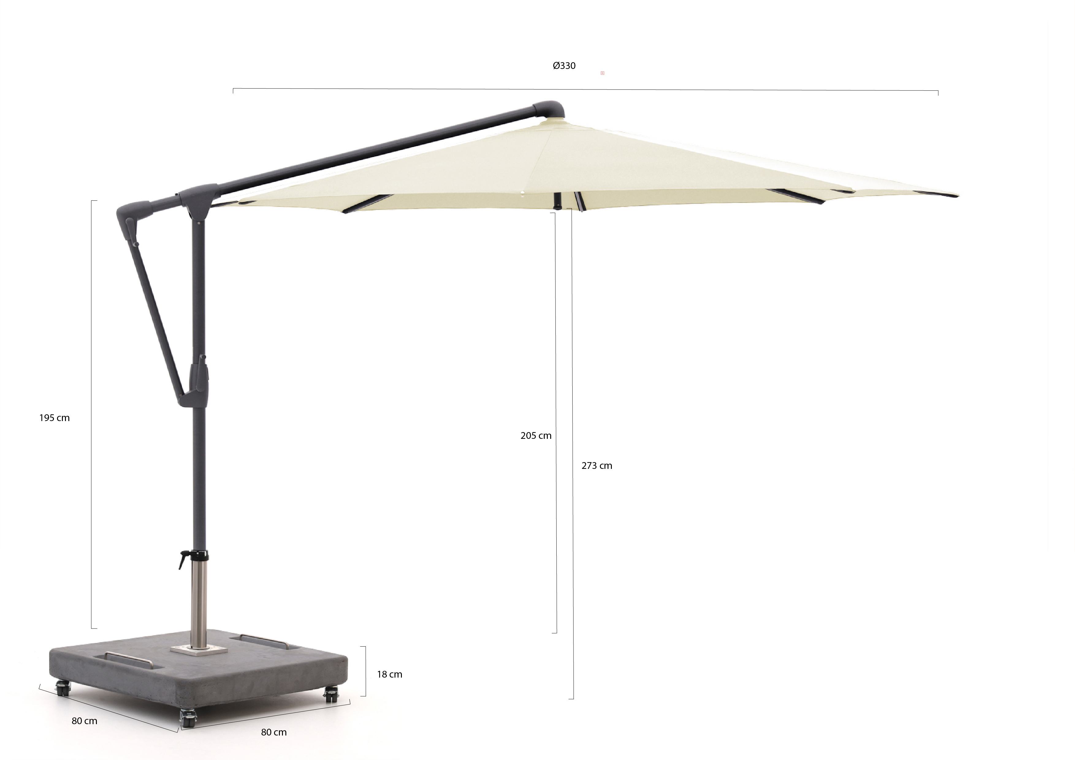- Gewicht van de parasol (excl. voet) 14.2