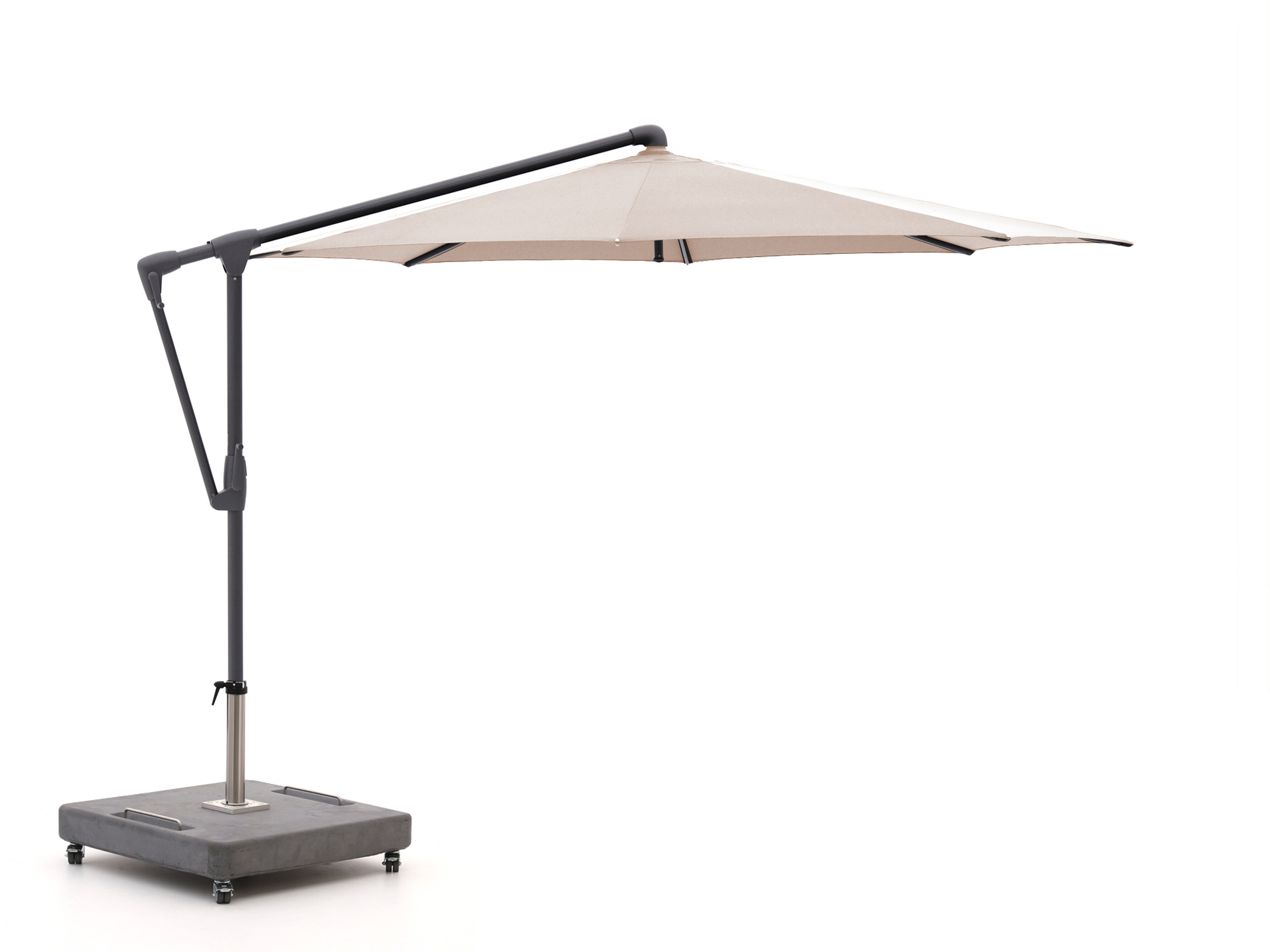 Je draait de parasol in 360 graden makkelijk met de zon mee. Zo zit je de hele dag lekker in de schaduw, zonder je stoel te verplaatsen.