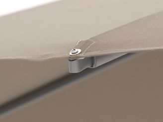 Dankzij de zwevende constructie zit er niks in de weg. Je hebt alle ruimte onder het doek, ideaal bij een eettafel of loungeset.