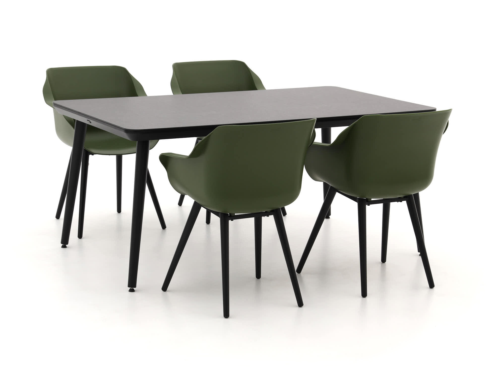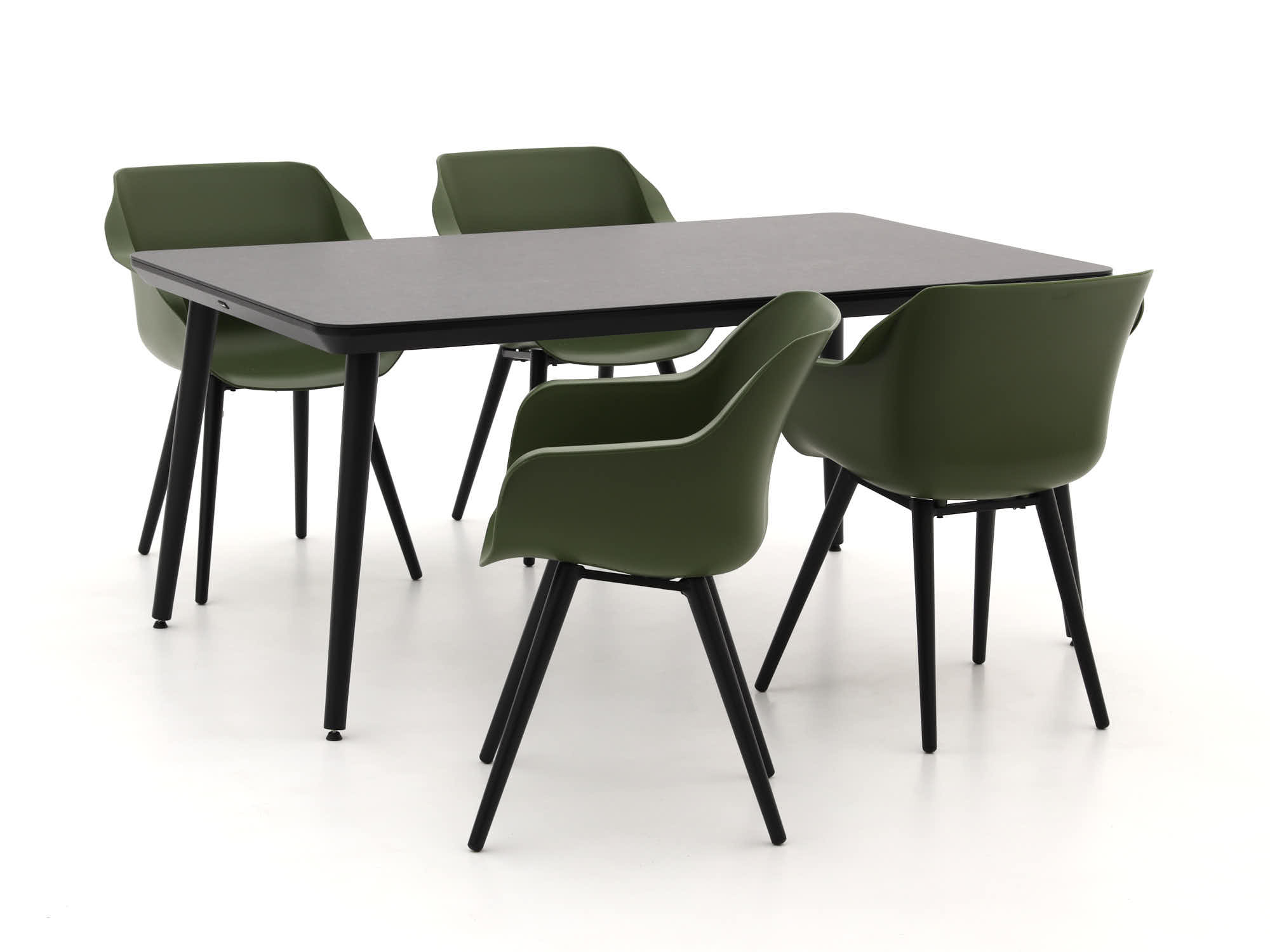 De Hartman Sophie Studio 170cm dining tuinset is als een frisse bries voor je terras. Met zijn mosgroene stoelen en antraciet tafelblad voegt deze set een vleugje stijl en comfort toe aan je buitenruimte. De stoelen zijn gemaakt van stevig kunststof dat zich moeiteloos aanpast aan je lichaam, waardoor je urenlang kunt genieten van een gezellige maaltijd of een goed gesprek. Het tafelblad van HPL is niet alleen kras- en vlekbestendig, maar ook bestand tegen de grillen van het weer. Dus, of de zon nu schijnt of de regen tikt, deze set blijft er als nieuw uitzien. En met het aluminium frame hoef je je geen zorgen te maken over roest of onderhoud – gewoon neerzetten en genieten!