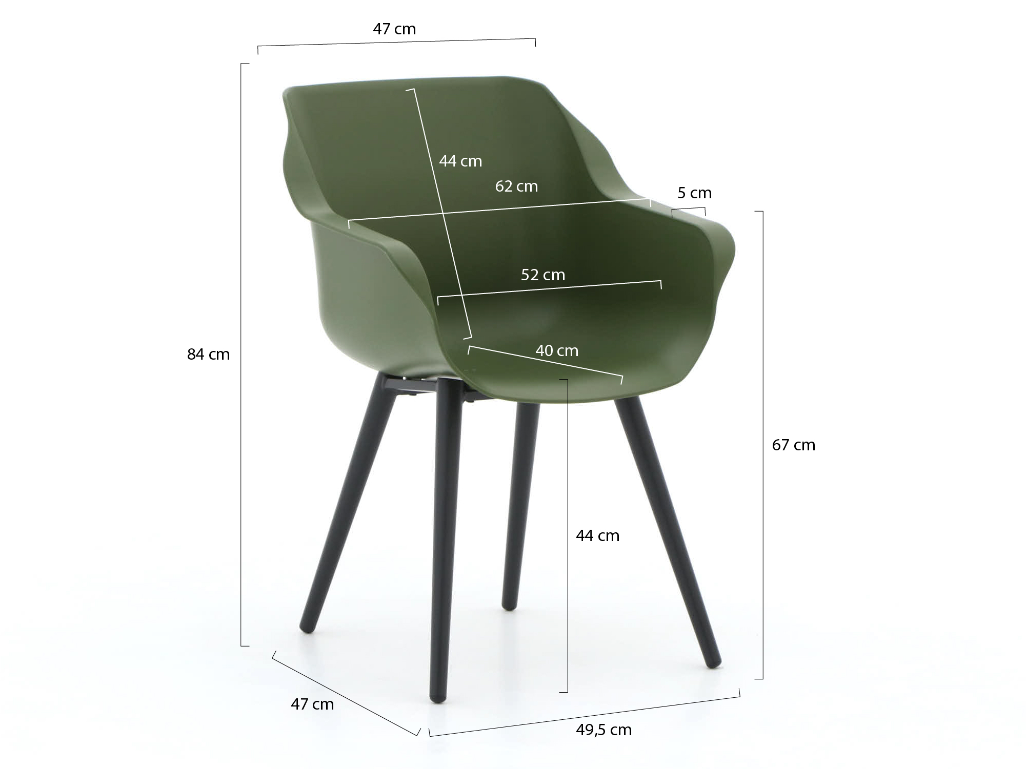 Kunststof stoelen: Lichtgewicht en UV-bestendig, waardoor ze hun kleur behouden en makkelijk te verplaatsen zijn.