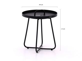 Het tafelblad is afgewerkt met een sterke poedercoating die beschermt tegen roest en verkleuring