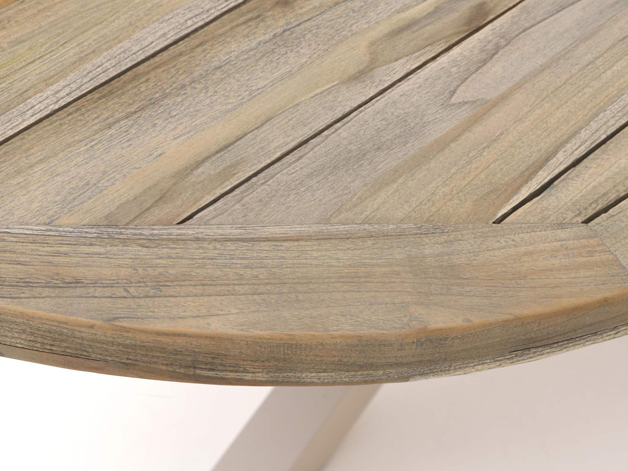 • Het teakhouten tafelblad is weerbestendig en krijgt een mooie greywash uitstraling