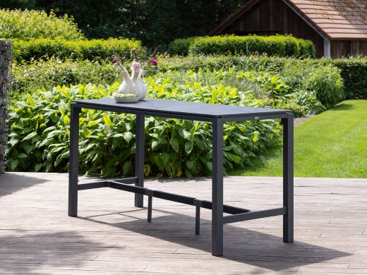 De Intenso Sergio Trecenta barset is een hoge tuintafel met 6 barkrukken, ideaal als je graag buiten borrelt of een wat hogere zit prettig vindt. Het aluminium onderstel is licht van gewicht, terwijl het sterke sintered stone tafelblad juist lekker stevig is en tegen een stootje kan. De smalle barkrukken nemen weinig ruimte in, waardoor deze set goed past op een smaller terras of onder een overkapping. De strak gevlochten grijze wicker stoelen zitten comfortabel én blijven netjes zonder loshangende draden. Zoek je een set om met vrienden aan te borrelen en toch actief te zitten, dan zit je met deze barset letterlijk goed.