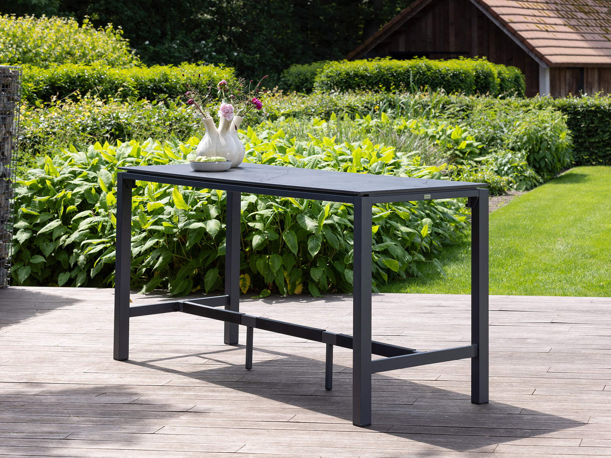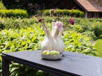 • Aluminium onderstel: Het frame is licht en roest niet, waardoor je de tafel makkelijker verschuift als je je terras anders wilt indelen.