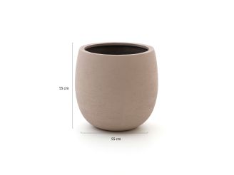 De Luca Lifestyle Terreno Balloon bloempot L ø55cm in de kleur Sand is een ruime, lichte pot voor wie een stevige, onderhoudsarme basis zoekt voor grote kunstplanten of echte beplanting, zowel binnen als buiten. Dankzij het lichtgewicht materiaal verplaats je deze grote pot nog redelijk makkelijk, zonder dat je rug meteen moppert. De pot is UV en vorstbestendig, dus hij kan gewoon buiten blijven staan als het weer omslaat. Handig als je geen zin hebt om elk seizoen met potten te slepen. Zoek je een compacte pot of wil je de bak vaak gevuld verplaatsen, dan is dit formaat wat aan de royale kant.