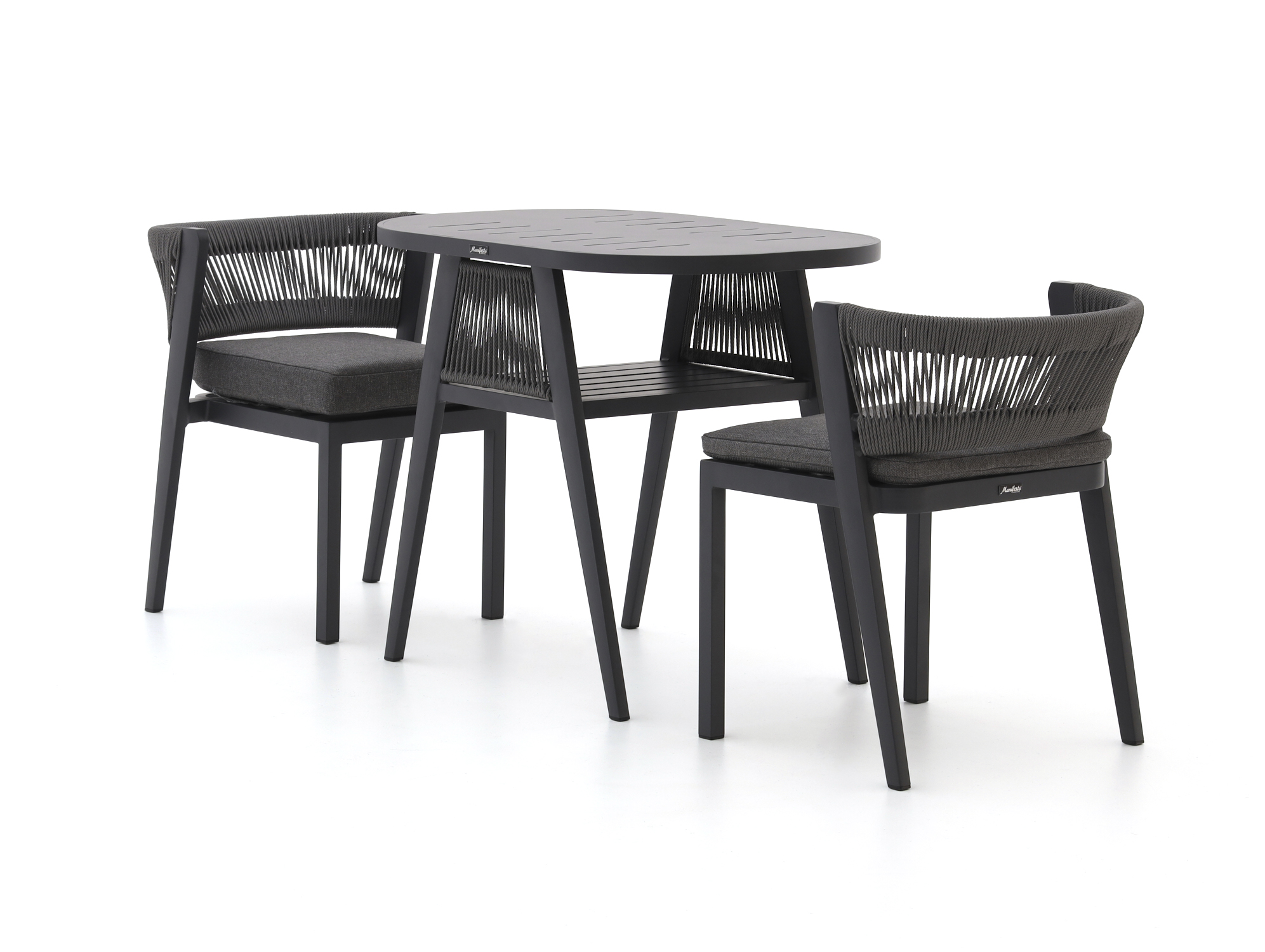 De Manifesto Borsea balkonset is een compacte set voor 2 personen, ideaal als je een kleiner balkon of terras hebt maar toch lekker buiten wilt zitten. De ronde aluminium tafel en stoelen in grijs maken de set licht en strak, zonder gedoe met onderhoud. Dankzij de meegeleverde kussens zit je een stuk comfortabeler dan op een kale stoel, perfect voor je ochtendkoffie of een borrel aan het eind van de dag. Zoek je een weerbestendige, simpele set waar je niet de hele zaterdag aan hoeft te poetsen, dan zit je met deze balkonset goed.