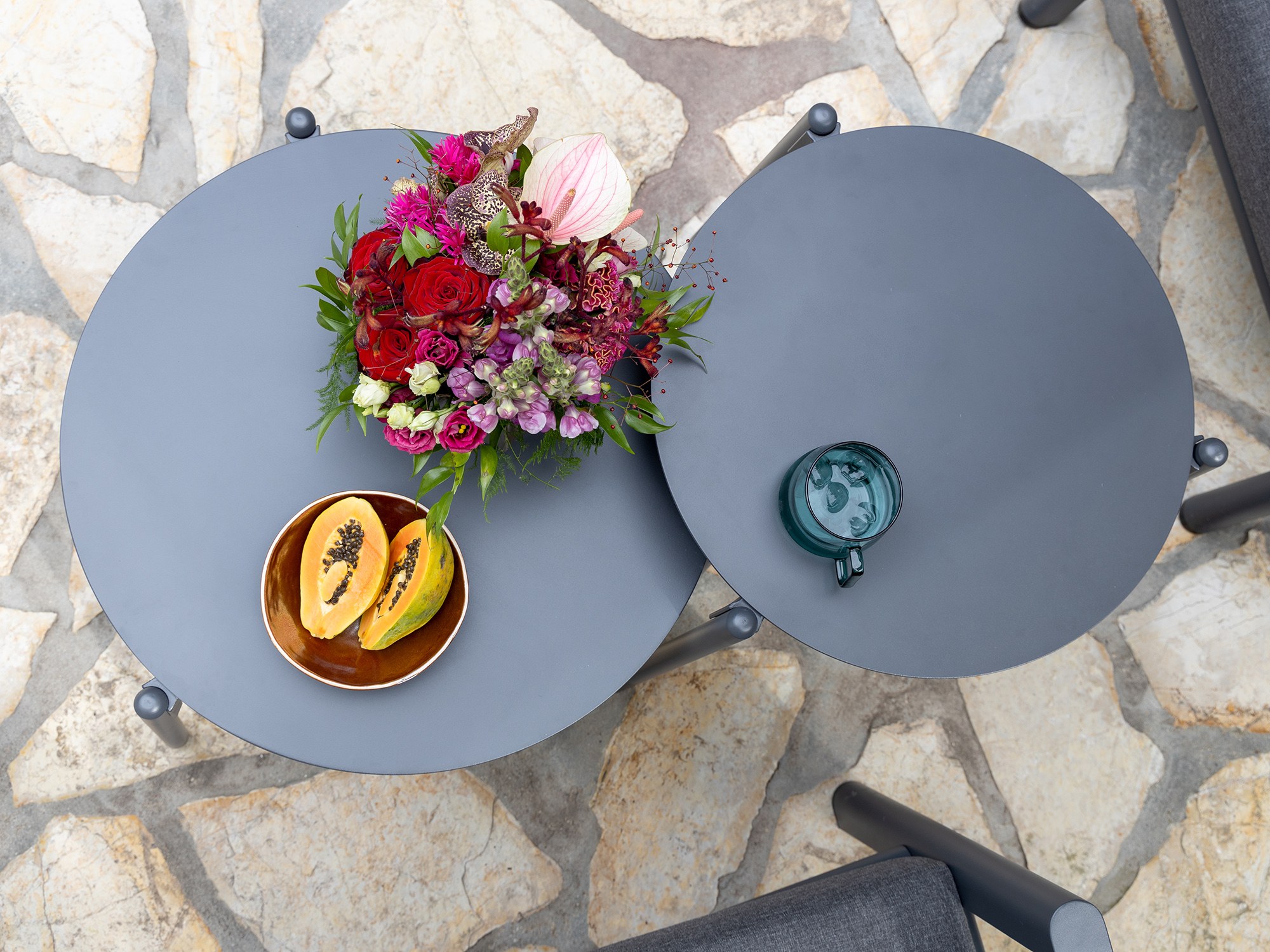 Lichtgewicht aluminium: Het aluminium frame is niet alleen stevig, maar ook licht, waardoor je de tafel eenvoudig kunt verplaatsen naar de perfecte plek in je tuin.