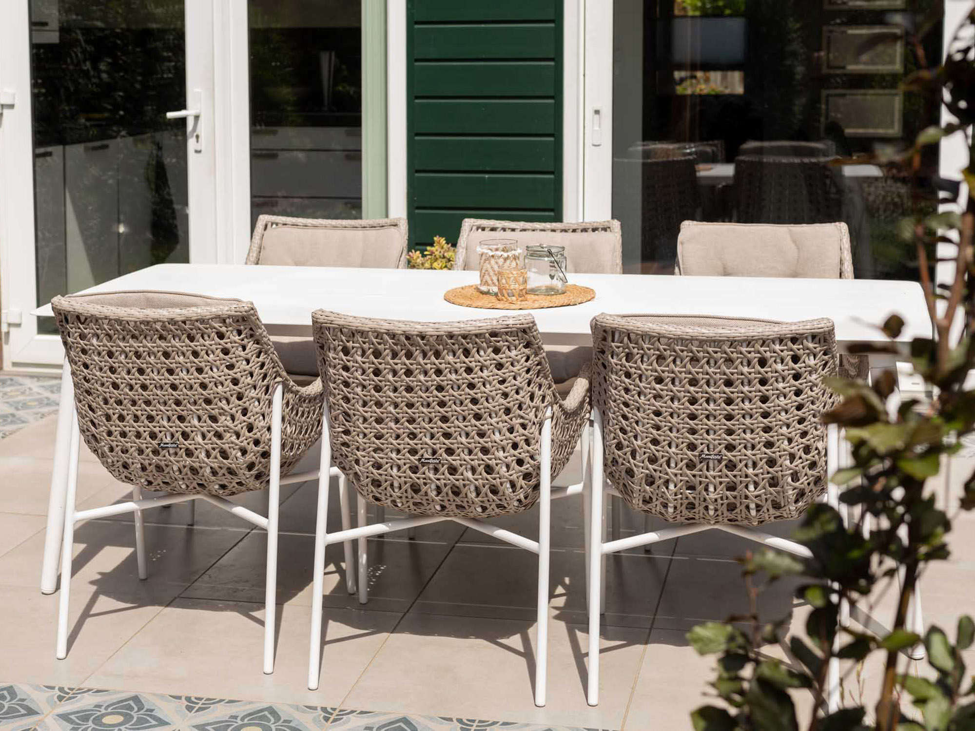 Wicker zitting: De stoelen zijn voorzien van handgevlochten wicker, wat niet alleen strak oogt maar ook vochtbestendig is. Perfect voor het wisselvallige Nederlandse weer!