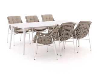 Met de Manifesto Novara/Sora dining tuinset haal je een stijlvolle en praktische aanvulling voor je tuin in huis. Deze 7-delige set, uitgevoerd in lichtgrijs met een wit frame, biedt plaats aan zes personen. Ideaal voor lange zomeravonden met vrienden of familie. De comfortabele kussens nodigen uit om lekker lang te tafelen, terwijl het strakke design van de aluminium tafel en stoelen zorgt voor een moderne uitstraling. En laten we eerlijk zijn, wie wil er nu niet een tuinset die er niet alleen goed uitziet, maar ook nog eens onderhoudsarm is?