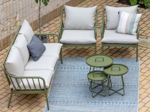 De Manifesto Pito bijzet tuintafel is een compacte, ronde tafel voor naast je loungeset of tuinstoel, ideaal voor je drankje, boek of borrelhapjes. Dankzij het aluminium blad en onderstel in donkergroen is hij licht van gewicht en makkelijk te verplaatsen als je net even anders wilt zitten in de zon of schaduw. Met een diameter van 37 cm en een hoogte van 43 cm is dit tafeltje vooral handig als extra tafel, niet als eettafel. De groene kleur geeft je terras of balkon een rustige, natuurlijke look, zonder dat je er veel omkijken naar hebt.