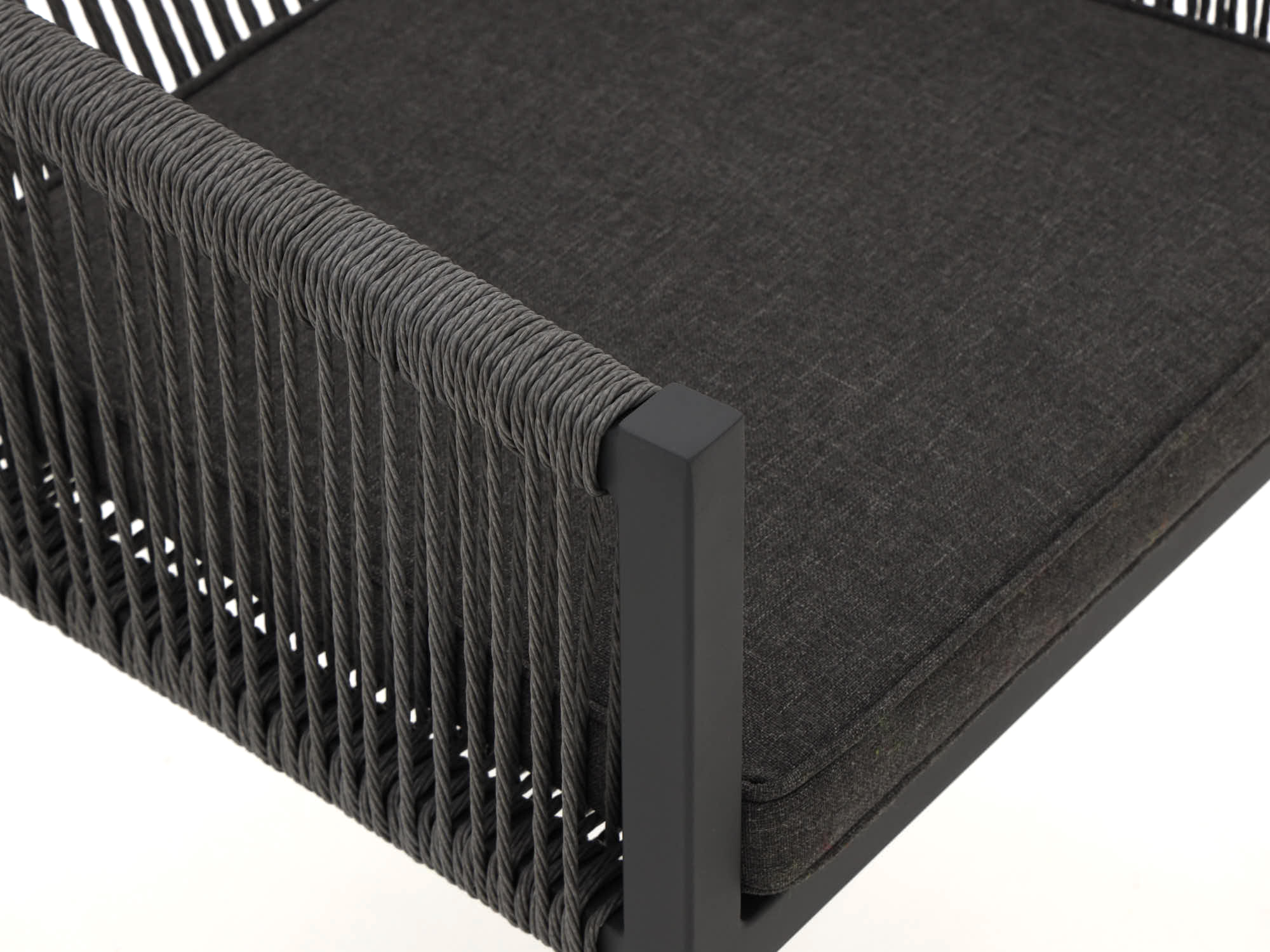 Rope zitting: De zitting van rope vormt zich naar je lichaam en blijft koel in de zon, ideaal voor warme zomerdagen.