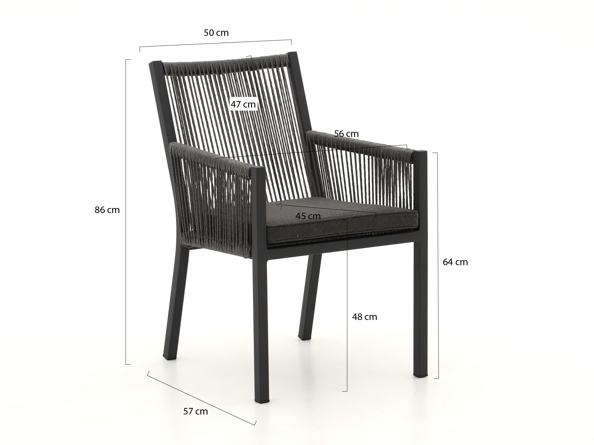 • Rope zitting: Het touw is strak gespannen, waardoor je jarenlang stevig en comfortabel zit zonder door te zakken.