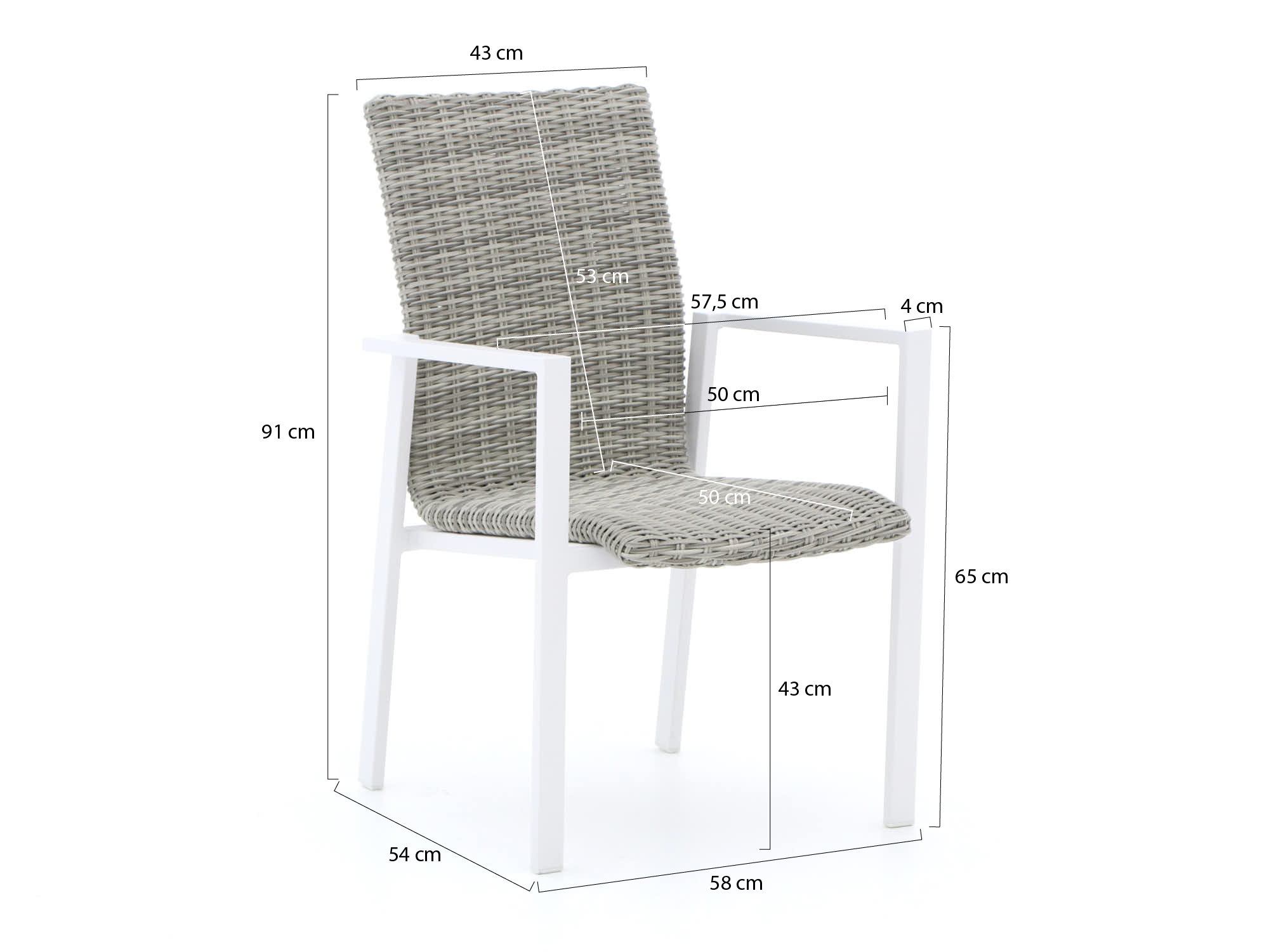 • Wicker zitting: Sterk en vochtbestendig vlechtwerk dat jaren netjes blijft, ook als er eens een regenbui overheen gaat.