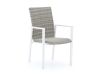 De Manifesto Villongo/Menzano dining tuinset is een stevige en lichte set voor 6 personen, ideaal als je graag buiten eet maar je terras wel netjes opgeruimd wilt houden. De aluminium tafel van 220 cm geeft je genoeg plek voor borden, schalen én een kan drinken, zonder dat je hoeft te schuiven. De stoelen hebben een aluminium frame met strak gevlochten wicker in beige, waardoor je comfortabel zit en de set er netjes afgewerkt uitziet. Dankzij het lichte aluminium verplaats je de set makkelijk als je je terras anders wilt indelen. En ben je even uitgegeten, dan stapel je de stoelen gewoon op elkaar zodat je terras weer ruim aanvoelt.