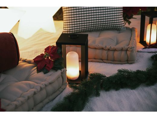 Zet deze lantaarn in de tuin of op het terras en je hebt meteen warme sfeer. Je kiest voor warm wit licht dat je kunt dimmen, of voor een vlam effect voor extra knus gevoel. Met een doorsnede van 18 cm en 30 cm hoog past hij makkelijk op de tuintafel. De Candy bulb lichtbron is afneembaar, dus je kunt hem ook los gebruiken; hij klikt met de magnetische voet in de lantaarn. Draadloos en oplaadbaar via USB C met de meegeleverde kabel, goed voor tot 20 uur licht, ideaal voor een lange avondborrel. Je bedient hem vanuit je stoel met de meegeleverde afstandsbediening. IP54 betekent echt buitenproof, dus binnen en buiten gebruiken is geen probleem. De lantaarn is zwart en geeft 200 lumen met warm wit licht van 2000K.