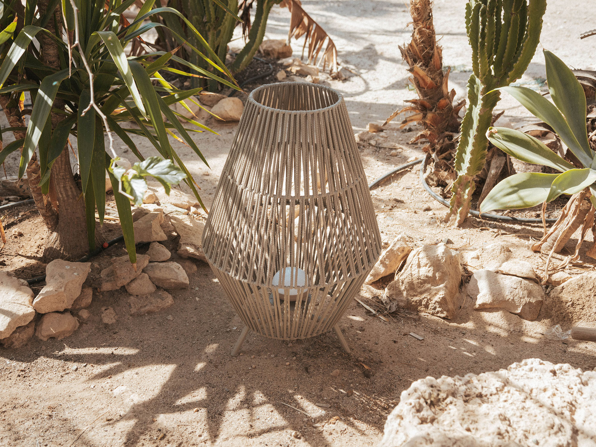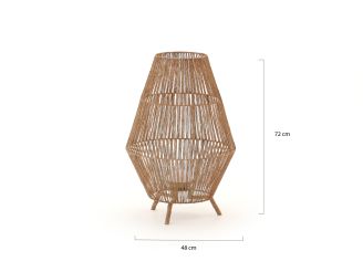 Zet de New Garden Sisine vloerlamp neer waar je wilt en het wordt meteen gezellig buiten. Draadloos en oplaadbaar via USB, dus geen gedoe met snoeren. Met 72 cm hoogte en een diameter van 48 cm valt hij op zonder in de weg te staan. Het warme witte licht van 2700K is dimbaar, van zacht tijdens een avondborrel tot helder bij een tuinfeest. De LED levert tot 900 lumen en brandt tot 20 uur, afhankelijk van de stand. IP54 betekent echt buitenproof, dus geschikt voor binnen en buiten. De lamp is van seagrass en heeft een afneembare Cherry lichtbron die je met een magneet vastklikt of los ophangt met de ingebouwde haak. De afstandsbediening wordt meegeleverd voor extra gemak.