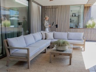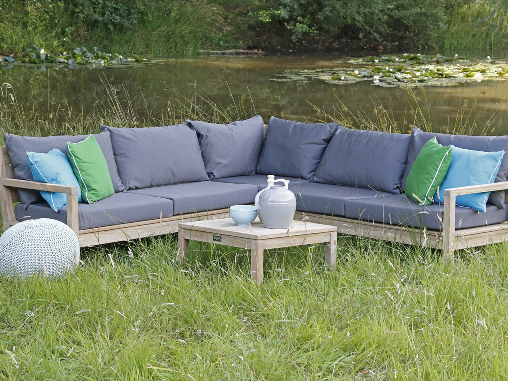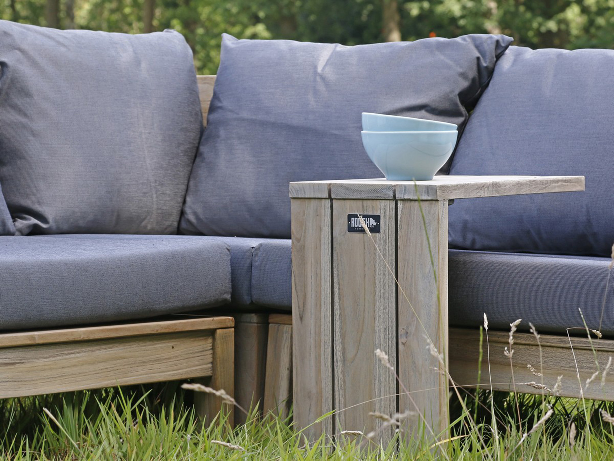 • Teakhouten frame: Je krijgt een stevig en zwaar hoekelement dat blijft staan als iemand zich er tegenaan laat vallen.
