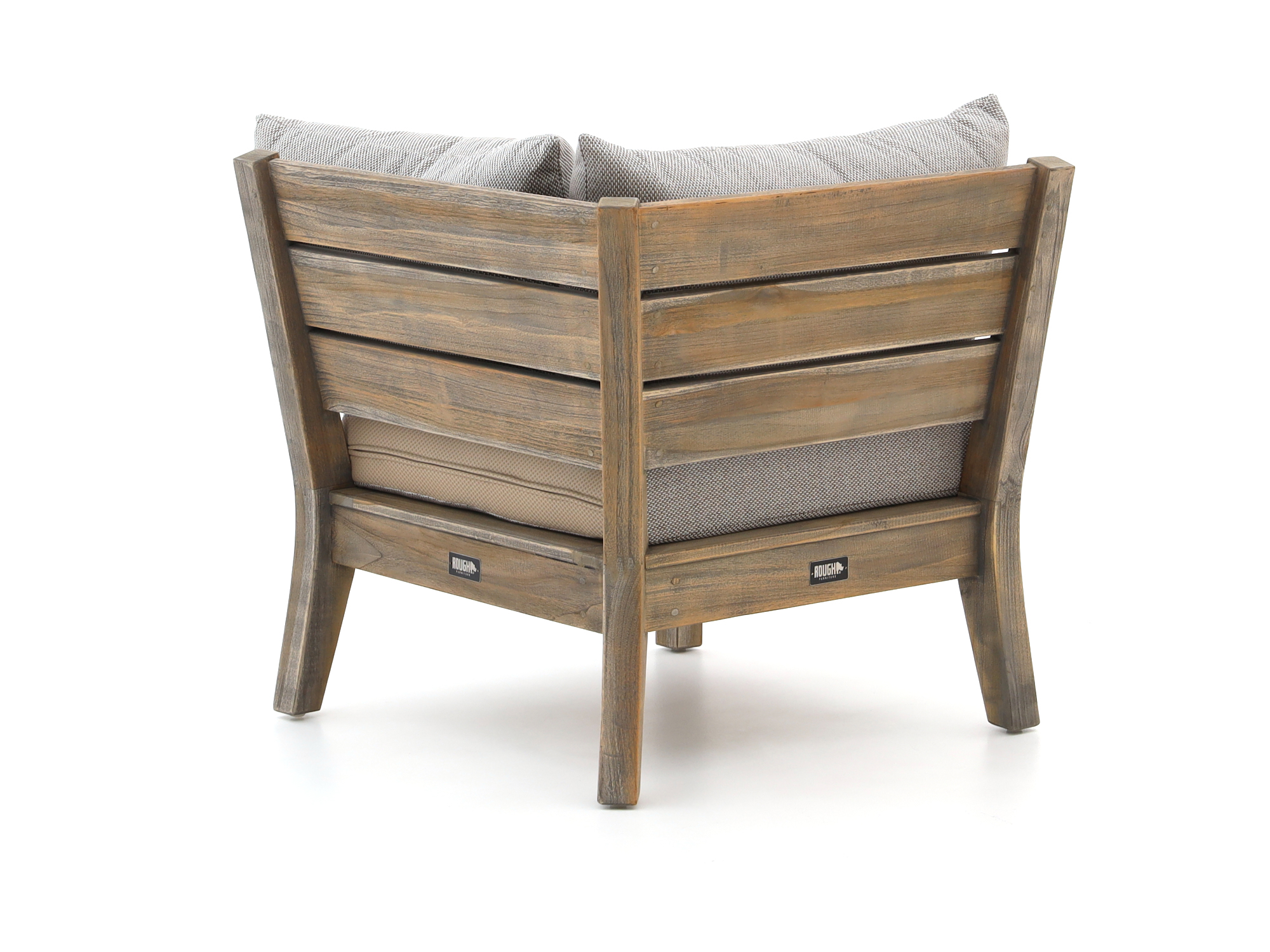 De ROUGH Batang lounge hoekmodule is een losse hoekstoel van teakhout voor 1 persoon, ideaal als je je bestaande loungeset wilt uitbreiden of een eigen opstelling wilt bouwen. Het sterke teakhout is geschikt voor alle seizoenen, zodat je hoekelement het hele jaar door buiten kan blijven staan. De grijze teakkleur met beige kussens geeft een rustige, neutrale basis waar je makkelijk andere meubels of accessoires bij combineert. Dankzij de inbegrepen kussens kun je direct neerploffen, zonder eerst op zoek te hoeven naar losse zit- en rugkussens. Handig: de hoezen zijn afritsbaar, dus als er een keer een glas omgaat, haal je ze er gewoon af om te reinigen.