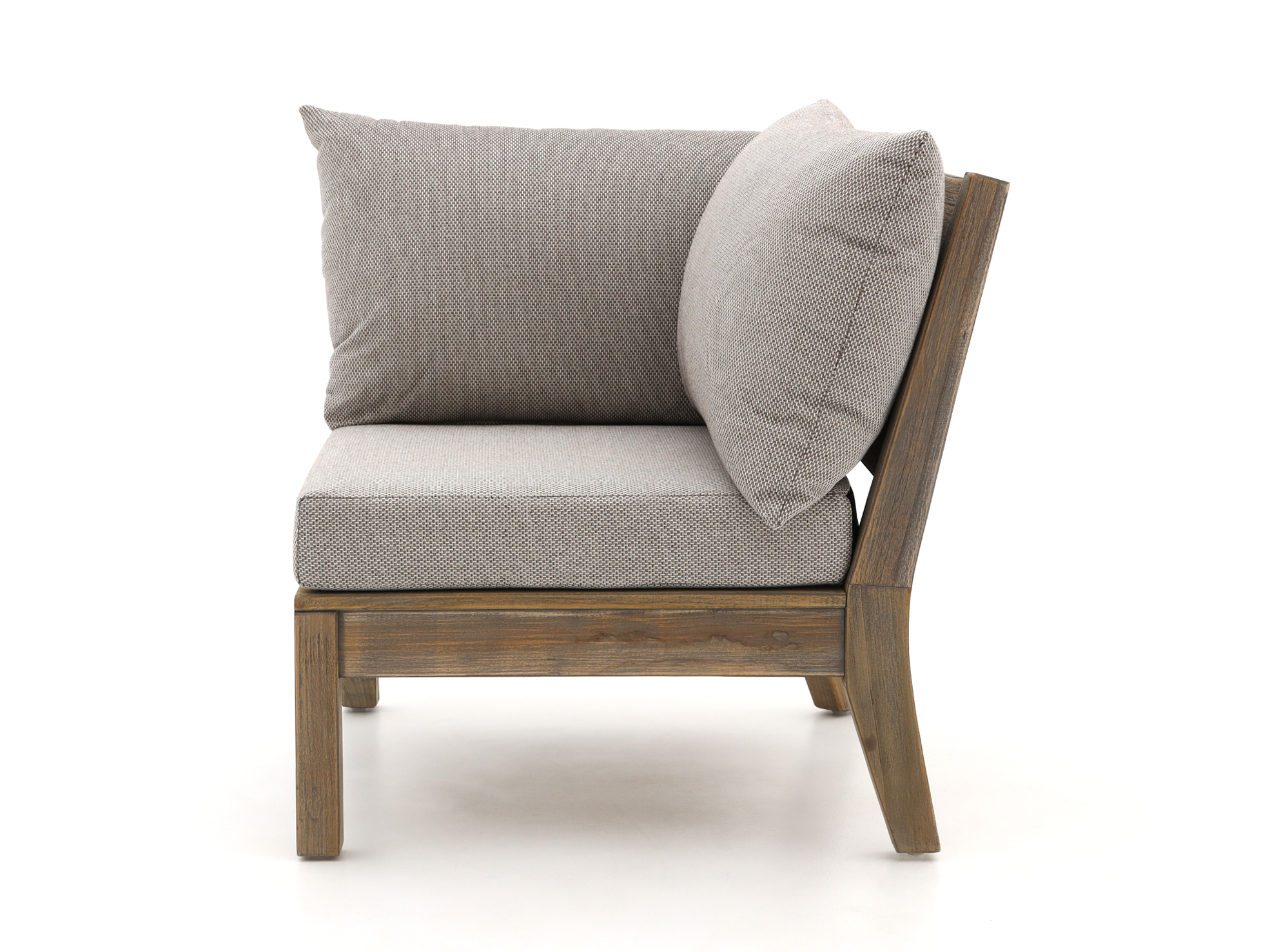 Belangrijk om te weten: deze lounge hoekmodule is voorzien van een Old teak greywash behandeling. Wij raden aan om de lounge hoekmodule af te nemen met een natte doek na aflevering om stof te verwijderen. Een grondige reiniging is in het eerste jaar bij Old teak greywash niet nodig, omdat je hiermee de grijze laag weghaalt.