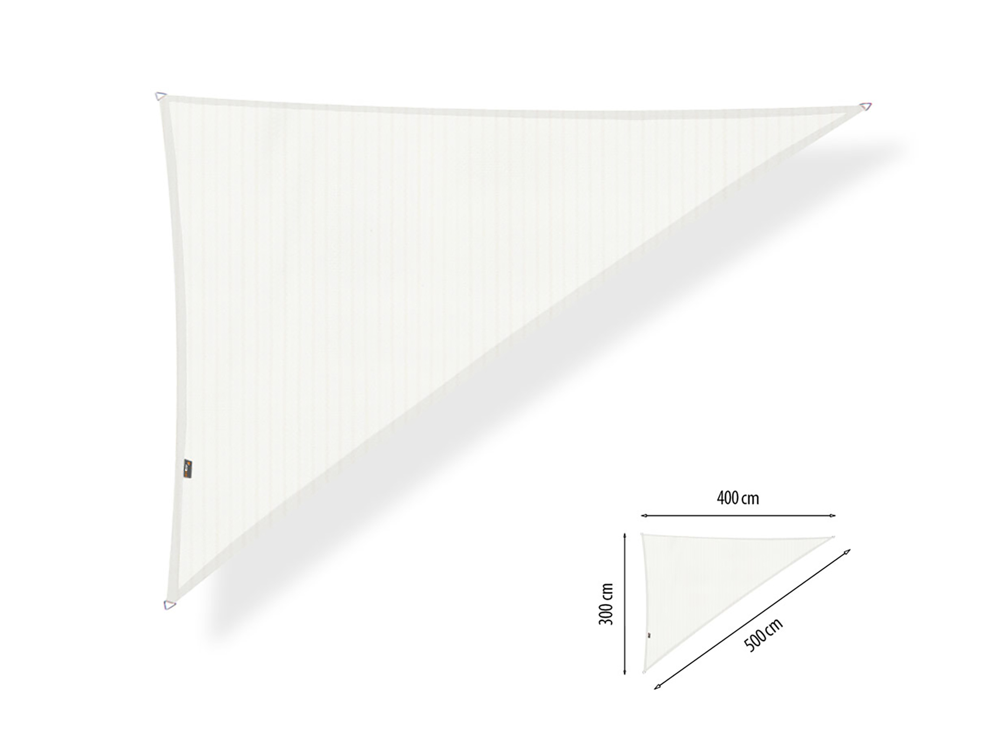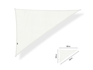 Met het Shadow Comfort driehoek schaduwdoek creëer je eenvoudig een fijne schaduwplek op je terras, in de tuin of boven een speelplek. Dit doek in de kleur Arctic White heeft een driehoekige vorm met zijden van 300, 400 en 500 cm en een hoek van 90 graden. Daardoor past het goed in hoeken van een terras of tussen gevel en schutting. Het HDPE-weefsel is ademend en waterdoorlatend, zodat warmte en regen niet ophopen, maar je wel uit de felste zon zit.