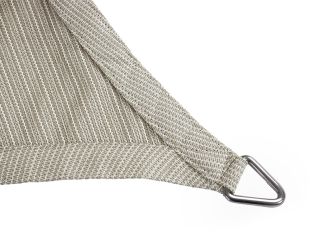 De zijkanten van dit schaduwdoek zijn licht gebogen (curves). Daardoor kun je het doek mooi gelijkmatig opspannen, zonder slappe randen. In de hoeken zitten stevige RVS ogen voor een betrouwbare bevestiging aan muur, paal of pergola. Houd bij het ophangen rekening met een spanningsmarge van minimaal 25 cm rondom, zodat er genoeg ruimte is voor de bevestigingsmaterialen en je het doek echt strak kunt trekken.