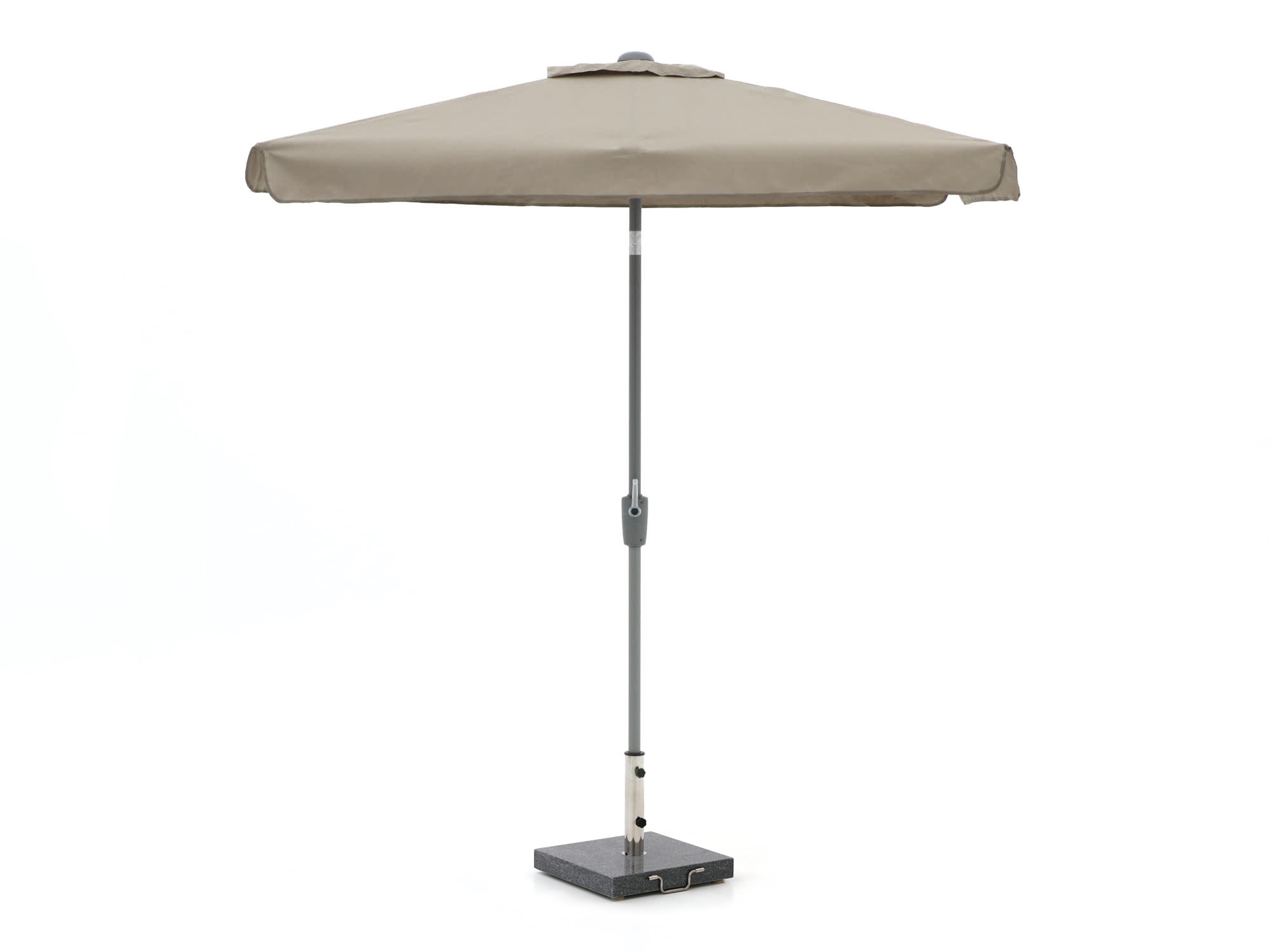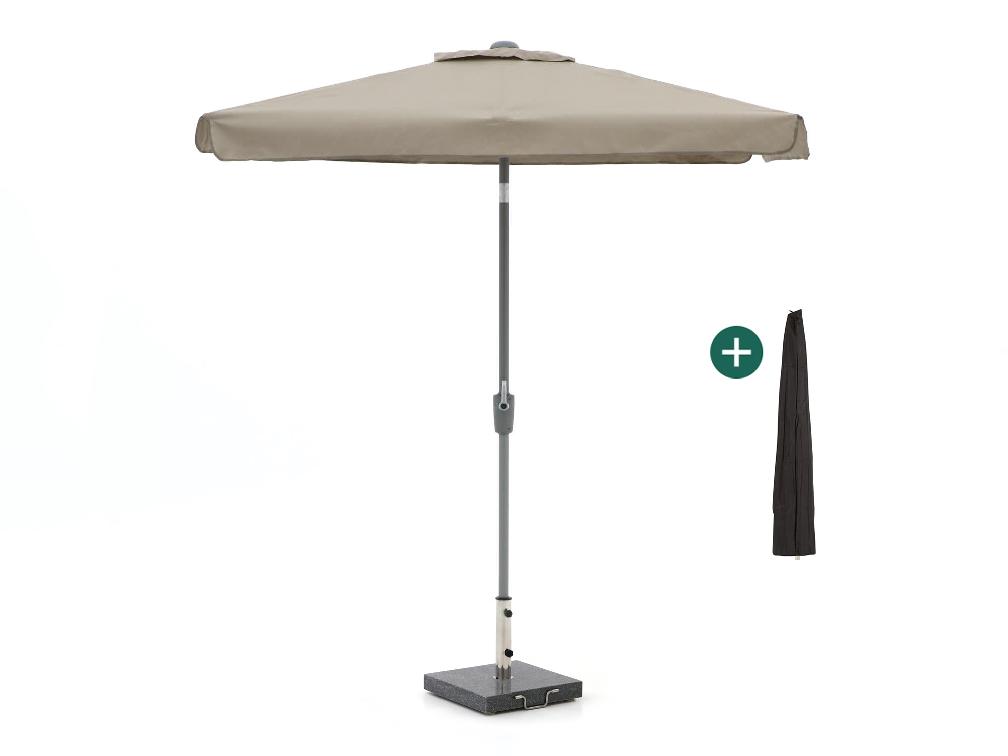Deze parasol is direct klaar voor gebruik. Je hoeft alleen de mast in de voet te plaatsen en goed vast te zetten. Afhankelijk van het model kan het nodig zijn om de vul- of kruisvoet extra te verzwaren, zodat de parasol stevig blijft staan, ook bij wind. Met de duidelijke handleiding zorg je ervoor dat alles veilig en stabiel staat. Zo kun je direct genieten van fijne schaduw in je tuin!