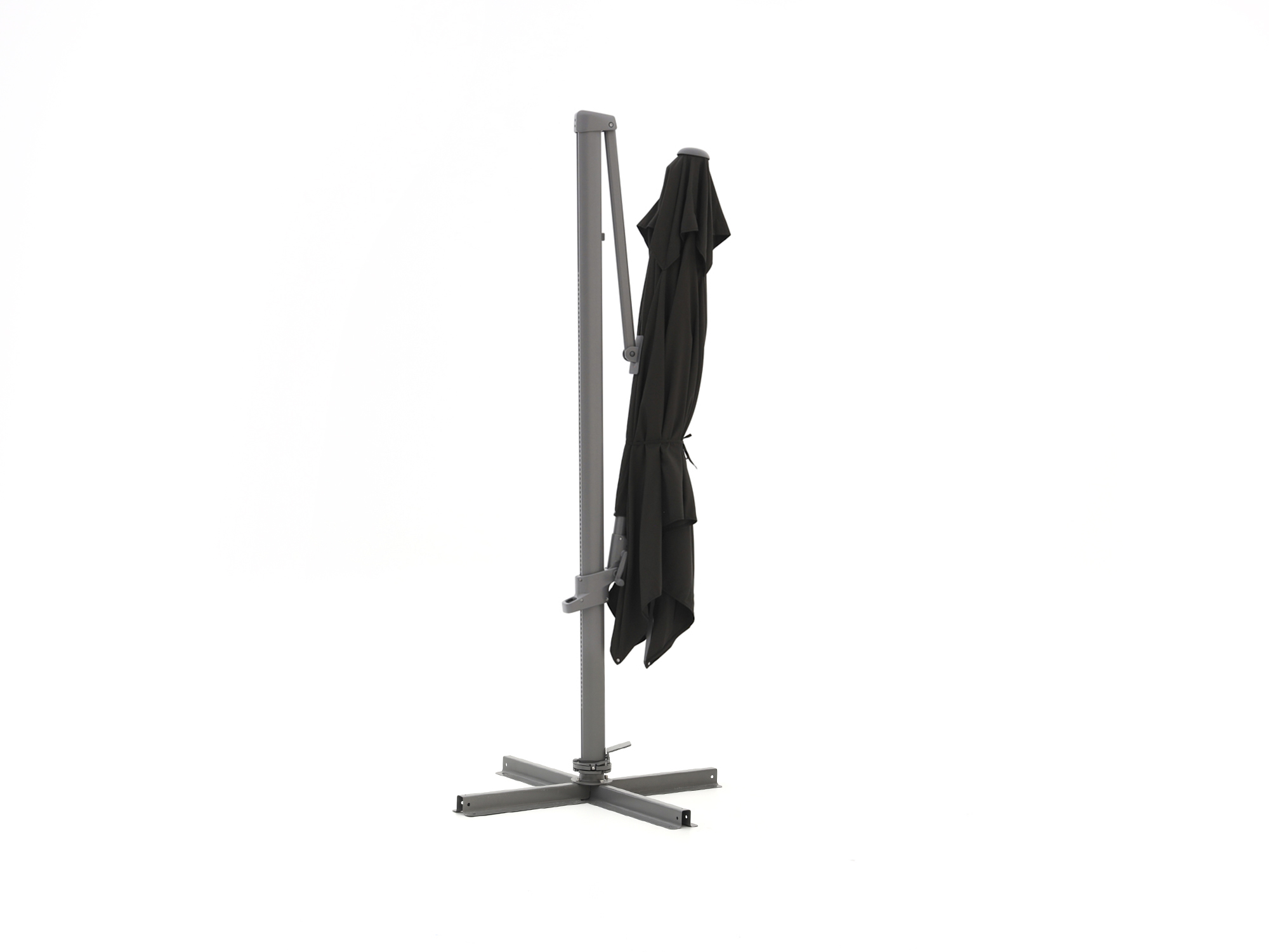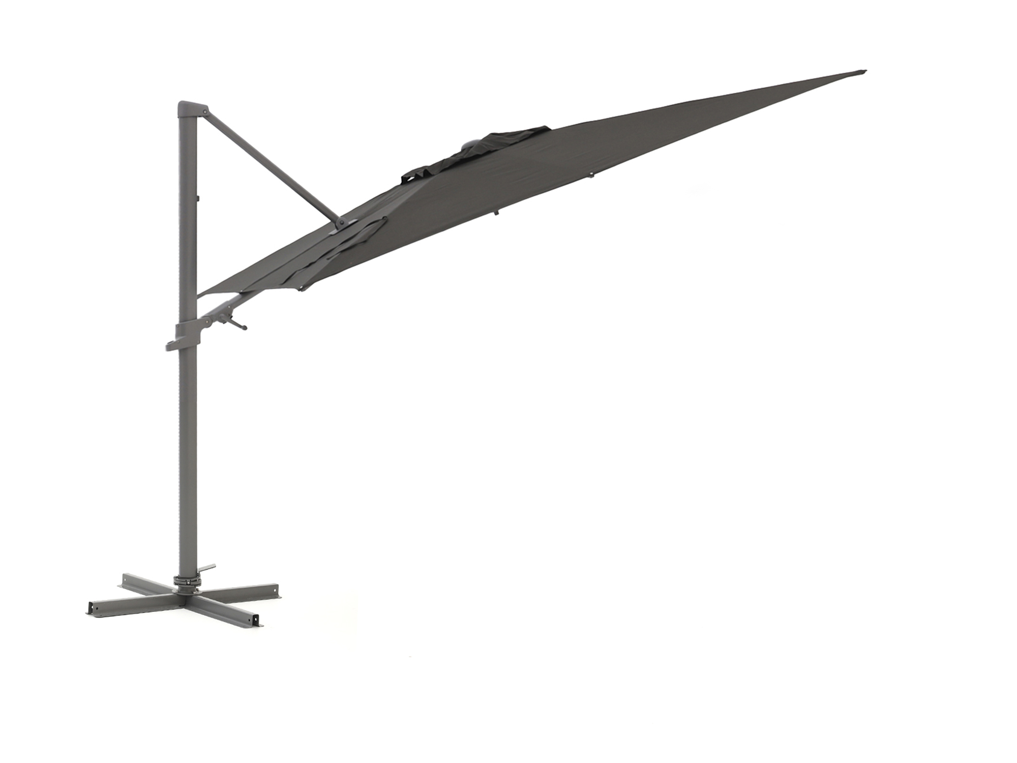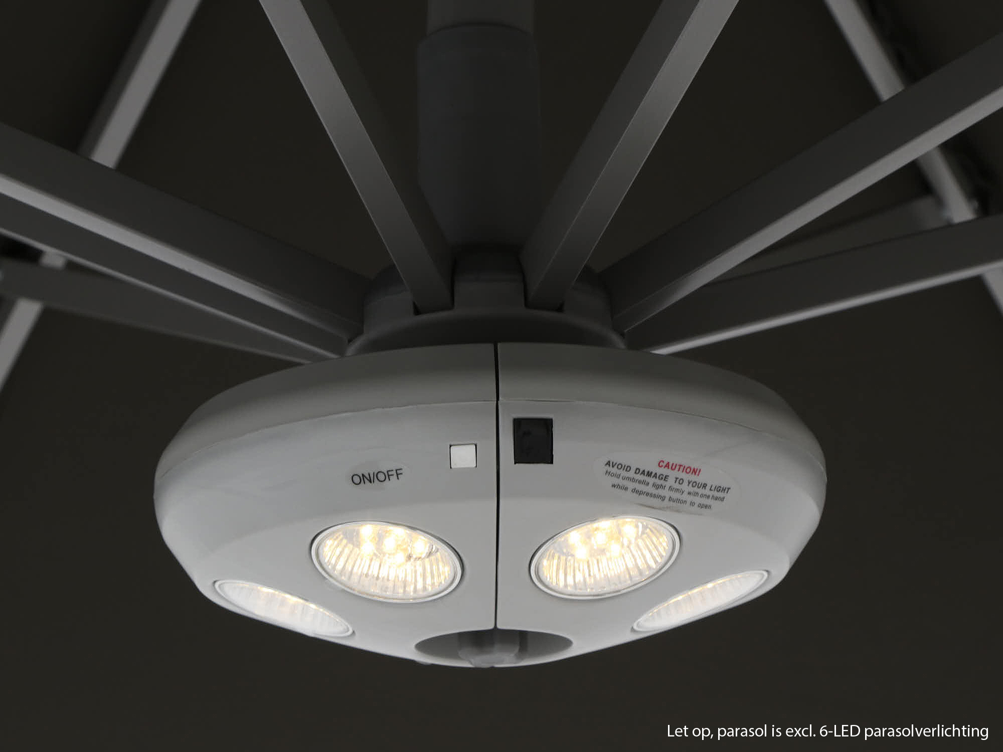 Dankzij de zwevende constructie zit er niks in de weg. Je hebt alle ruimte onder het doek, ideaal bij een eettafel of loungeset.