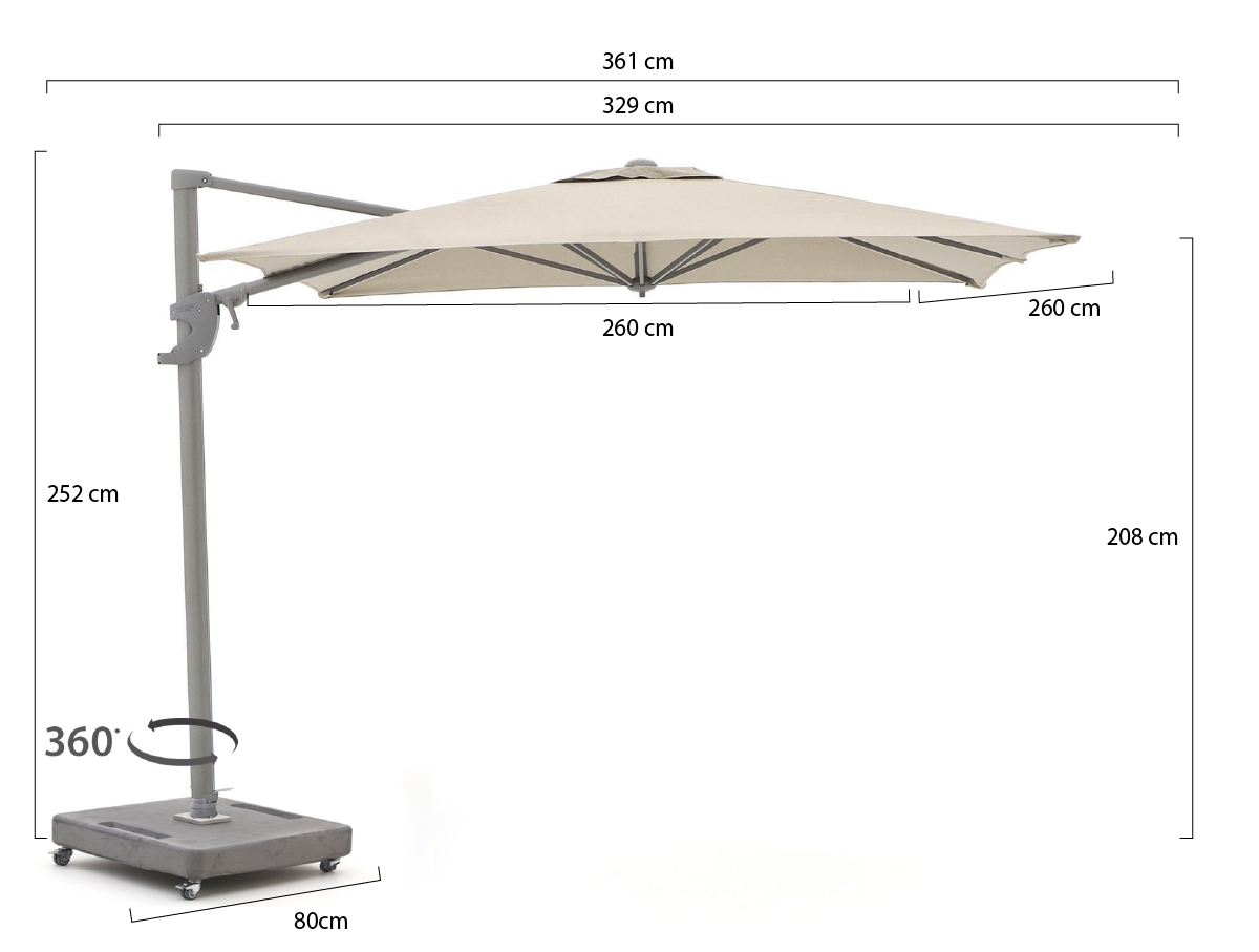 Shadowline Francisco zweefparasol 260x260cm