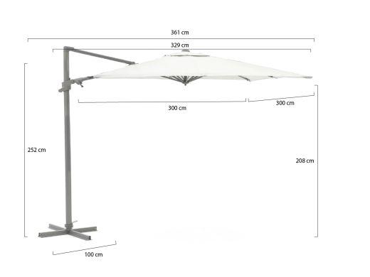 Shadowline Francisco zweefparasol 300x300cm