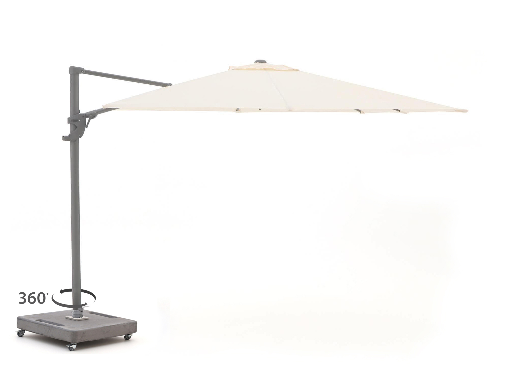Je draait de parasol in 360 graden makkelijk met de zon mee. Zo zit je de hele dag lekker in de schaduw, zonder je stoel te verplaatsen.