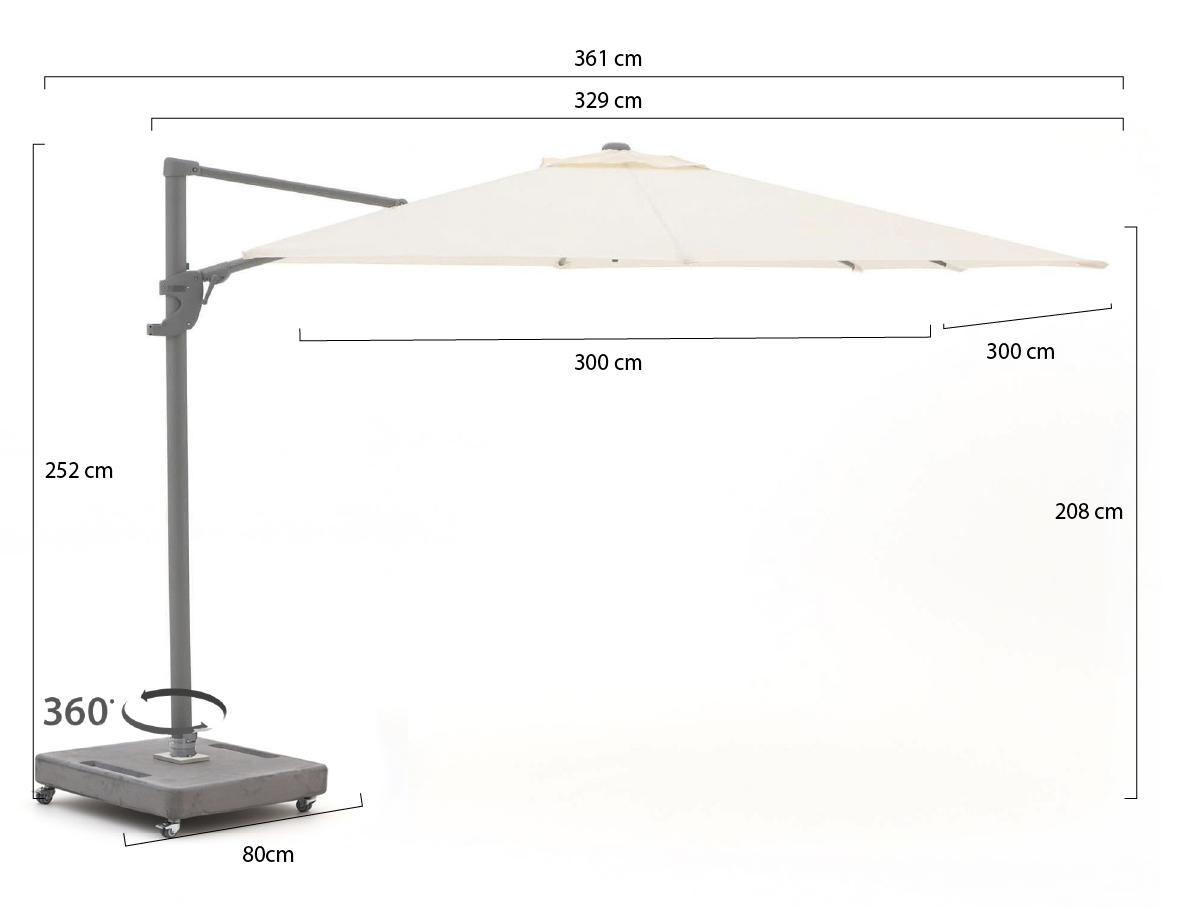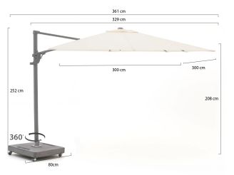 Shadowline Francisco zweefparasol 300x300cm
