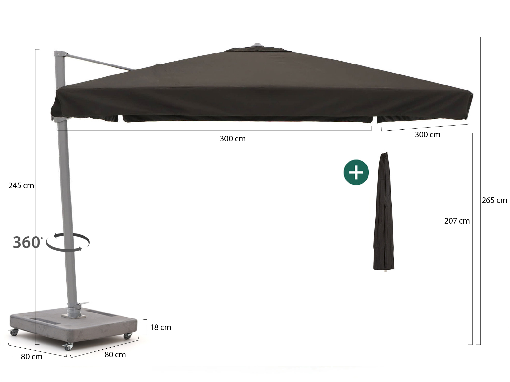 • Gewicht van de parasol (excl. voet): 30