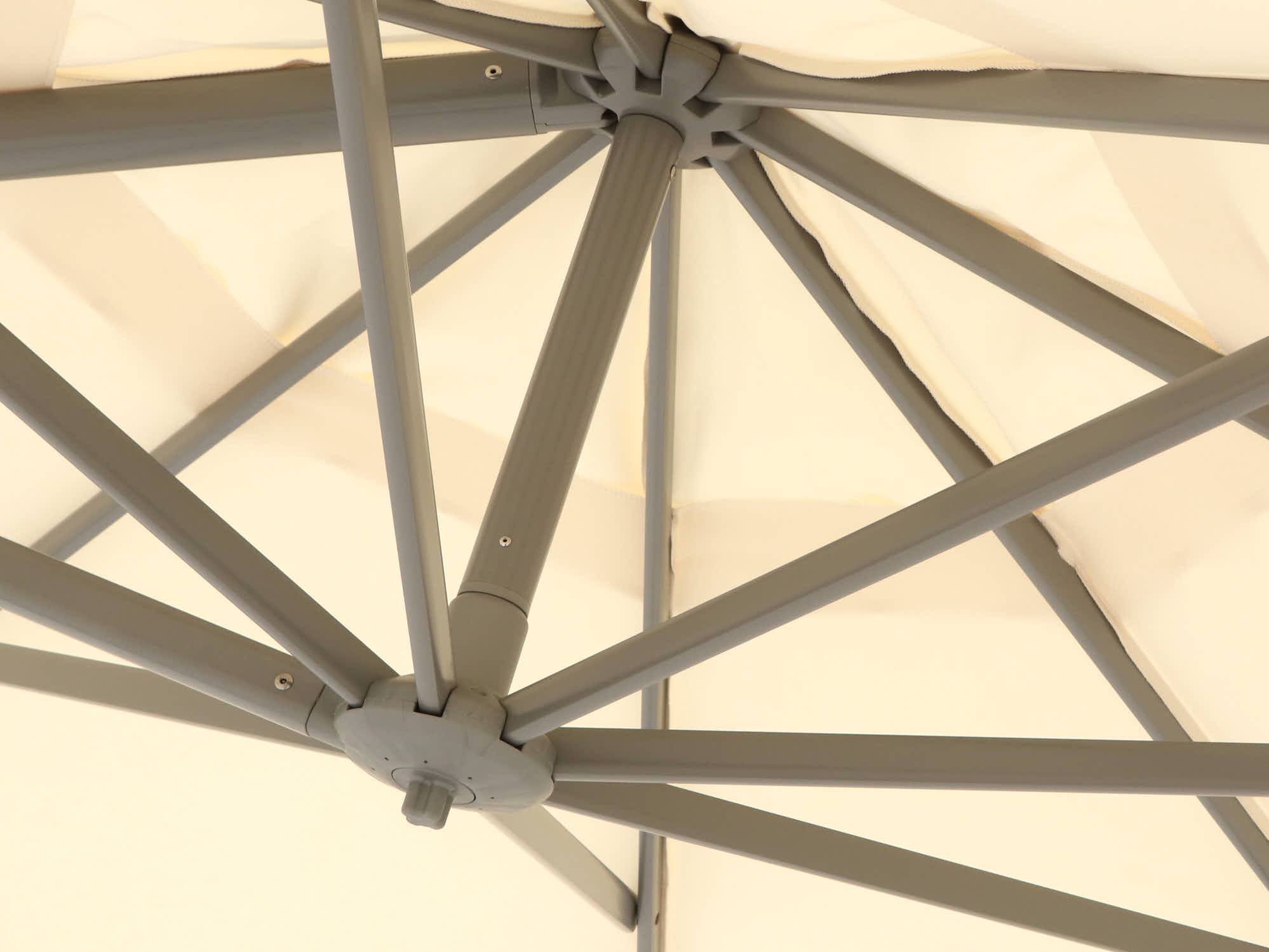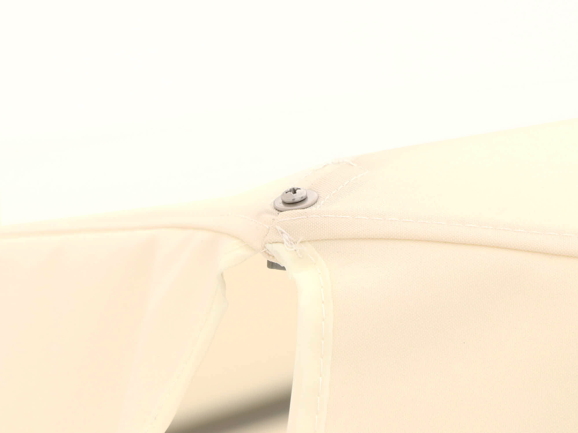 Detailfoto van de kwaliteit van een beige parasoldoek