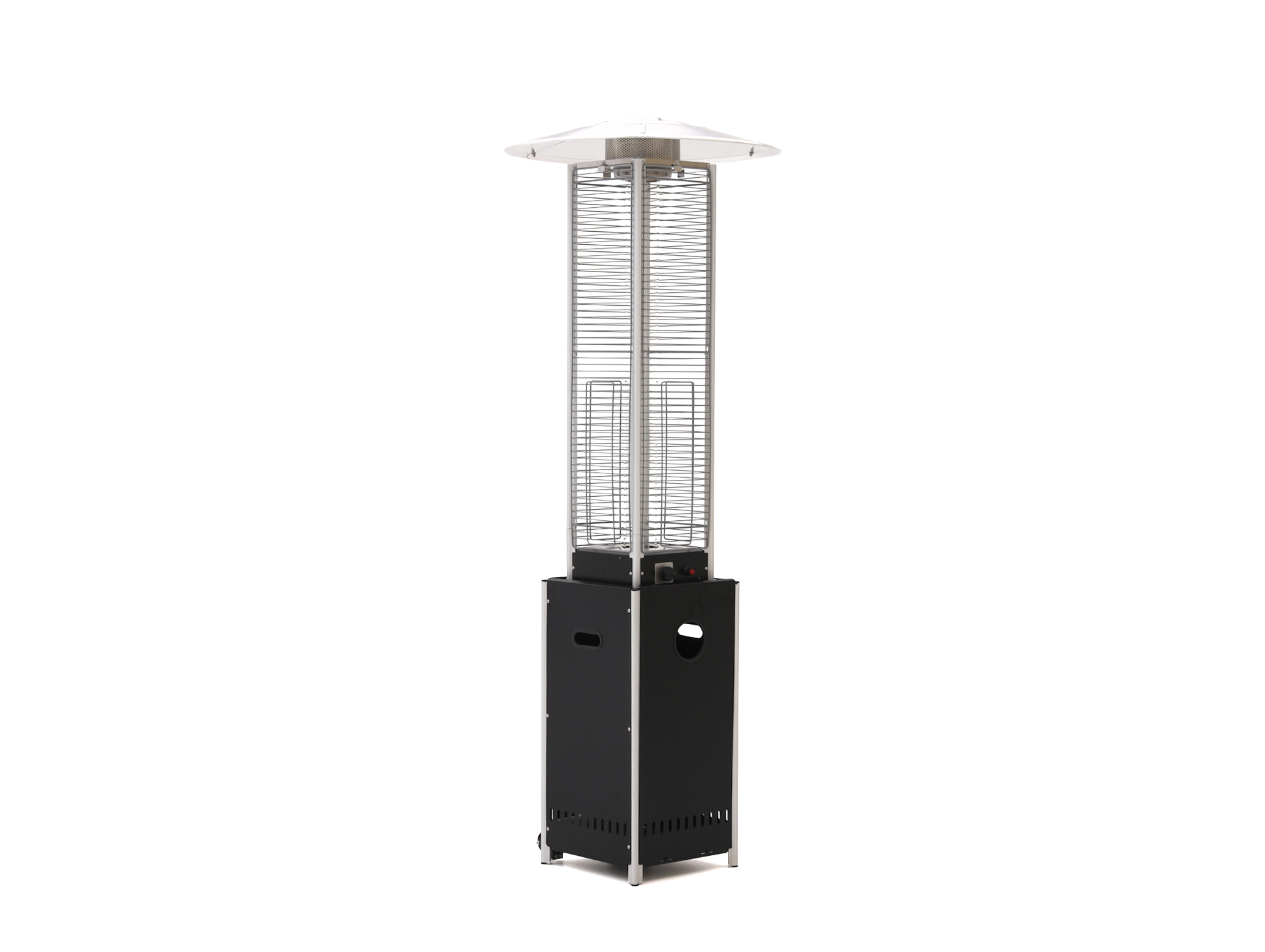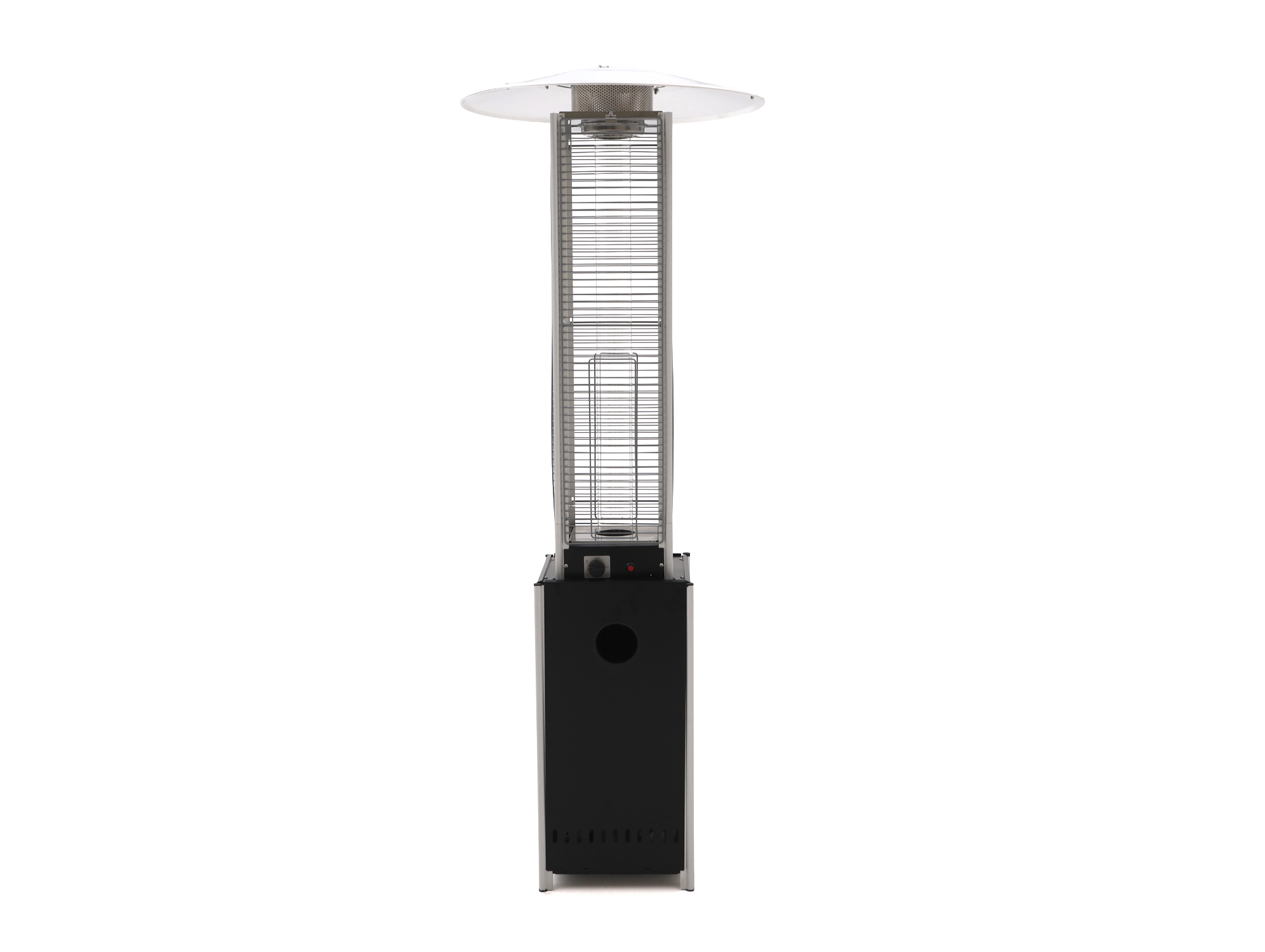 De Sunred Flame Torch Gas is een terrasverwarmer die direct in het oog springt. Met zijn hoge, slanke vorm en de combinatie van glas, staal en aluminium is het een stijlvolle toevoeging aan je tuin of terras. De vlam brandt in een glazen buis, zo is hij goed zichtbaar en minder gevoelig voor wind, terwijl jij er niet direct bij kunt. Hij werkt op propaangas, je hebt dus geen stopcontact nodig, en door de hoogte verspreidt de warmte prettig rondom. Ook in de horeca is dit een populaire keuze, de heater brengt niet alleen warmte, maar ook een levendig vlammenspel dat extra sfeer geeft. De gasfles (niet inbegrepen) plaats je netjes uit het zicht achter een deurtje, zodat het geheel er verzorgd uitziet. Gebruik hem altijd buiten of in een zeer goed geventileerde ruimte en zet hem op een stabiele, vlakke ondergrond.