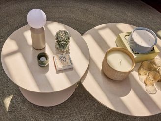 De SUNS Nova lounge tuintafel is een ronde loungetafel van 80 cm doorsnee, ideaal als centrale tafel bij je loungeset. Door de lage hoogte van 34,5 cm sluit hij mooi aan bij lage loungestoelen en hoekbanken, zodat je hapjes en drankjes op grijphoogte hebt zonder te moeten rekken. Het sintered stone tafelblad in beige is sterk en krasbestendig, je zet er dus gerust schalen, glazen en tijdschriften op. Het aluminium onderstel in dezelfde beige tint is licht van gewicht en weerbestendig, handig als je de tafel af en toe wilt verplaatsen op je terras.