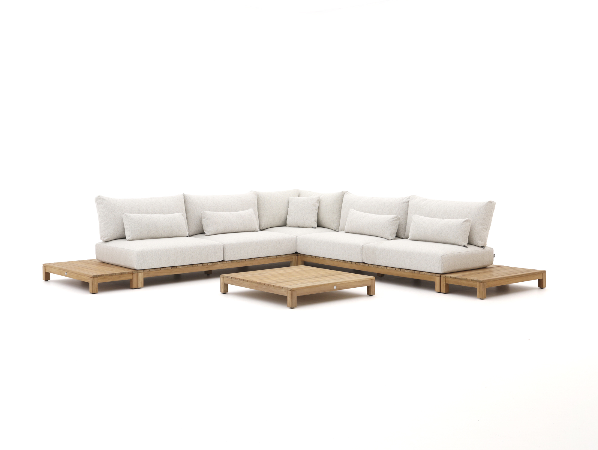 De SUNS Portofino hoek loungeset is een comfortabele hoekopstelling voor 5 personen, gemaakt van stevig teakhout met dikke kussens in een rustige beige kleur. Door de hoekopstelling benut je de ruimte in je tuin efficiënt en creëer je één vaste, gezellige zithoek waar iedereen makkelijk aanschuift. Teakhout is een sterk natuurproduct dat tegen alle weersomstandigheden kan, dus je hoeft niet zenuwachtig te worden bij de eerste regendruppel. De meegeleverde kussens zorgen dat je meteen goed zit, zonder gedoe met losse aankopen of zoeken naar de juiste maat. Ideaal als je op je terras gewoon een fijne vaste plek wilt om te relaxen, zonder er elke keer een heel project van te maken.