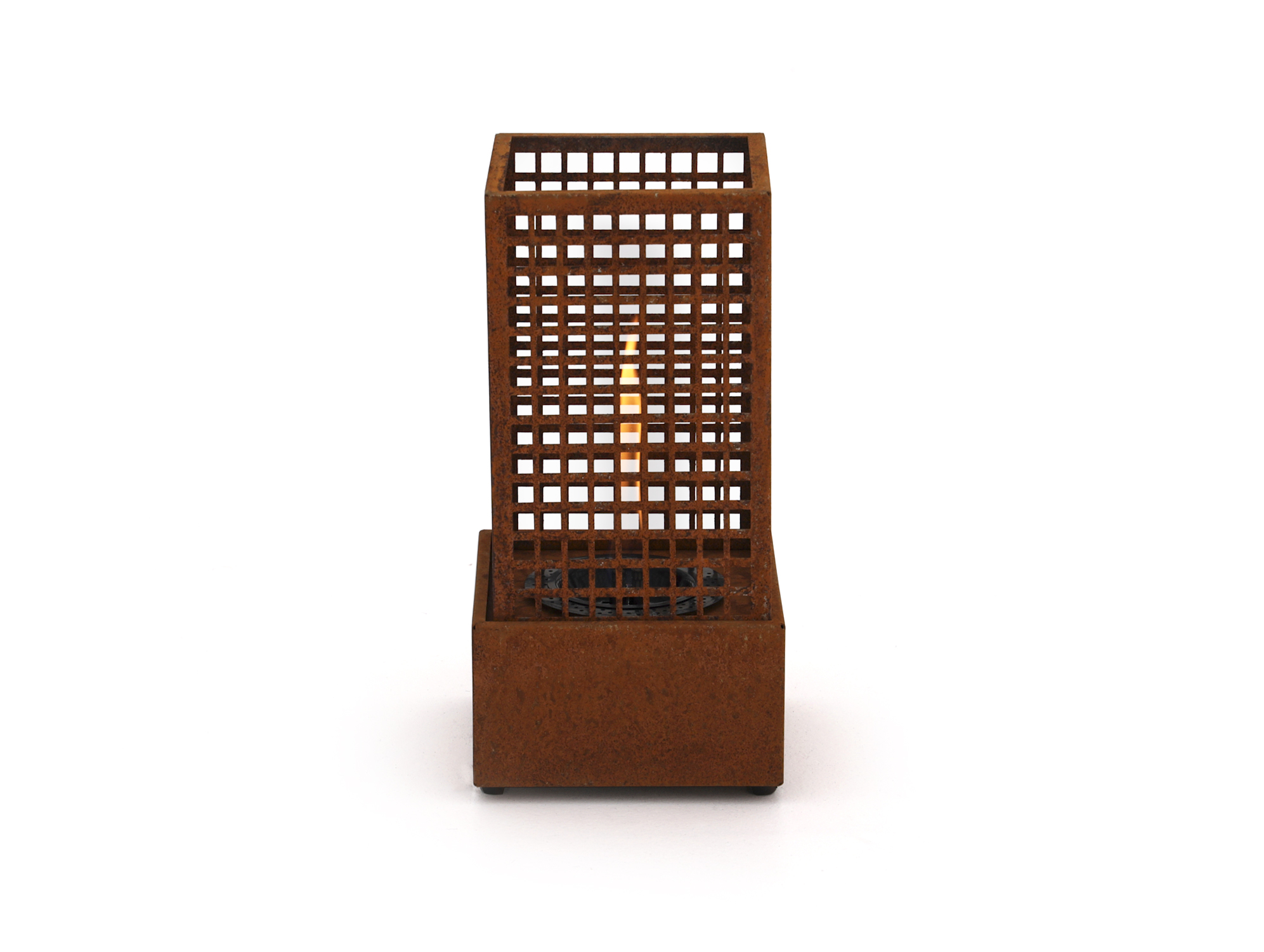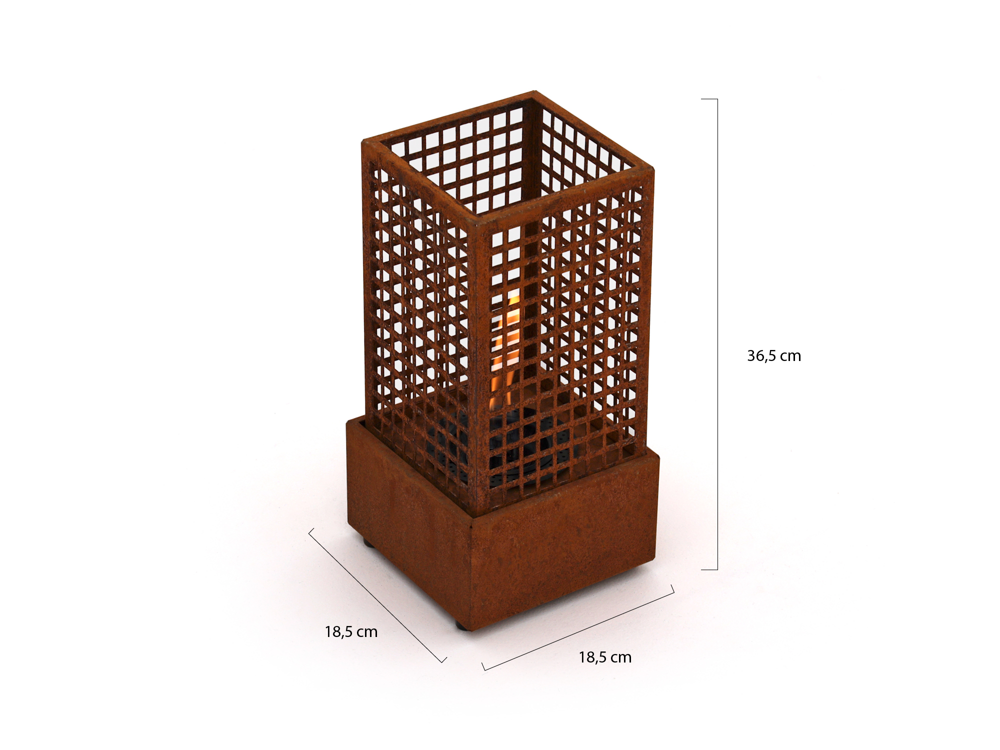 De Tenderflame Agni 18 is een kleinere haard die ideaal is voor een balkon, patio of kleine zithoek. Hij meet 18,5 x 18,5 cm en is 36,5 cm hoog. Ondanks zijn compacte formaat levert ook dit model echte warmte. De haard brandt enkel op Tenderfuel, waardoor je geen last hebt van rook, roet of geur.