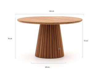 • Teakhouten tafelblad: Teakhout is een sterk natuurproduct dat tegen alle weersomstandigheden kan, zodat je tafel het hele seizoen buiten kan blijven staan.