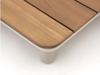 De Zavelli Luminosa lounge tuintafel 122x122x25cm is een grote, lage loungetafel met teakhouten blad, ideaal als je vaak relaxed zit op je loungeset met hapjes, drankjes en spelletjes op tafel. Het brede teakhouten blad geeft je veel ruimte om schalen, glazen en tijdschriften neer te zetten, zonder dat alles op elkaar gepropt staat. Dankzij het lage model sluit hij mooi aan op een loungeset: je hoeft niet steeds overeind te komen om bij je glas te kunnen. Het sterke aluminium onderstel in beige is licht van gewicht, dus je schuift de tafel makkelijk mee als je je opstelling verandert. Het natural teak tafelblad is een natuurproduct dat goed tegen het Nederlandse weer kan en in de loop van de tijd natuurlijk kan vergrijzen, als je dat mooi vindt.